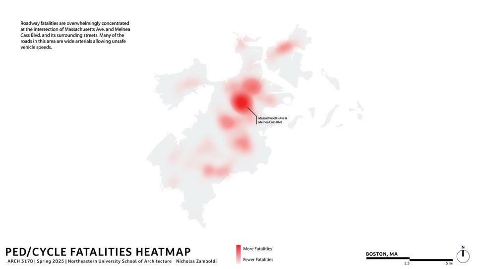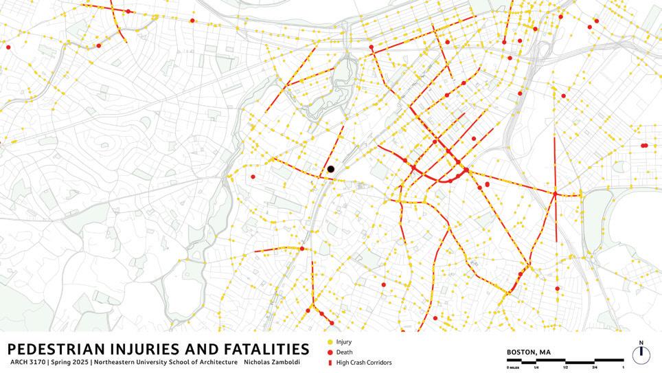 Road Safety. I used QGIS to analyze high-crash corridors surrounding the site, and used my findings to design safer routes through Backyard Boston.