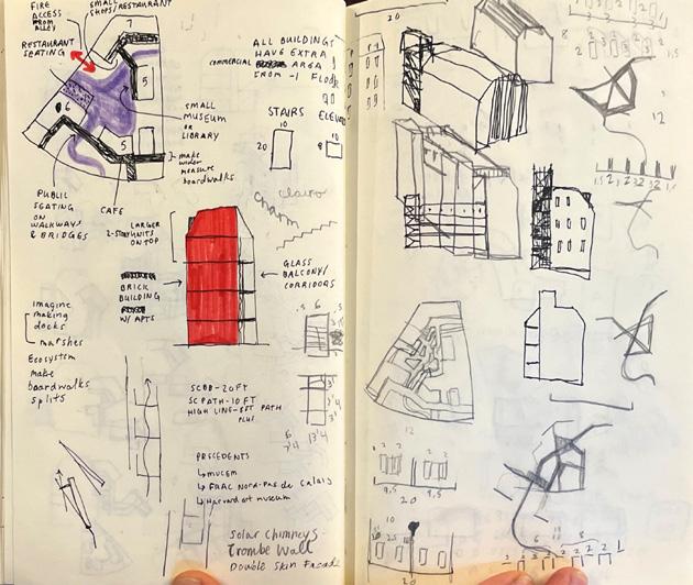Processing. I built six physical massing models and did lots of sketching to determine the optimal design.