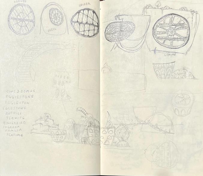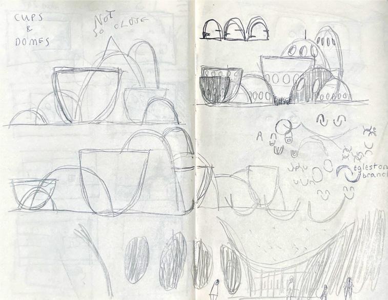 Processing. I worked through numerous compostions of cups and domes, as well as interior layouts, to reach my final design.