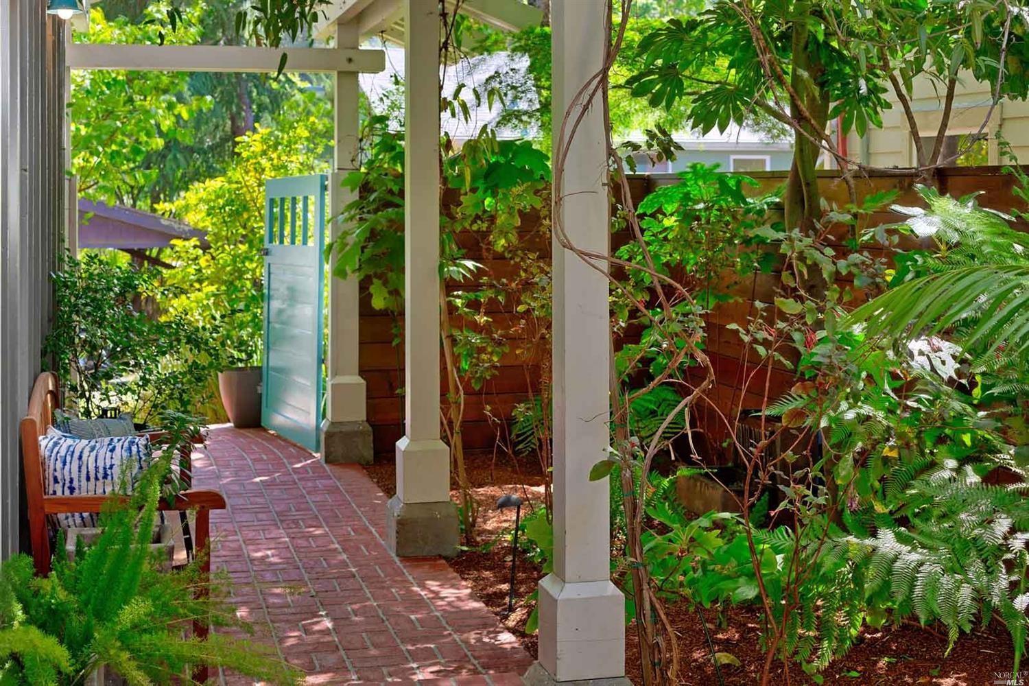 Uber charming, sophisticated, stylish, and everything in between! Enter through the inviting and private gate to a trellis-covered breezeway full of lush plantings and a zen-like vibe - you know you're someplace special. Dramatic great room with an abundance of windows, high ceilings, wood floors, and gas fireplace is the heart of this meticulously renovated 3 bedroom, 2 and a half bath beauty.