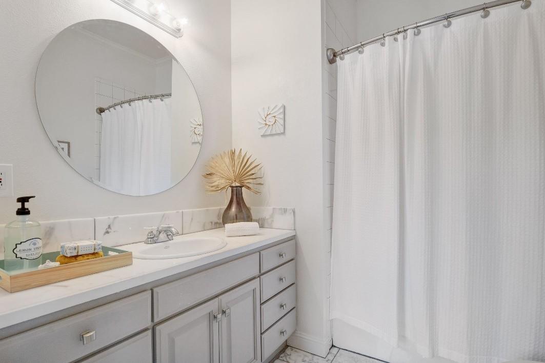 • Glorious primary suite with walk in closet, remodeled bathroom with soaking tub + stall shower and access to the outdoors