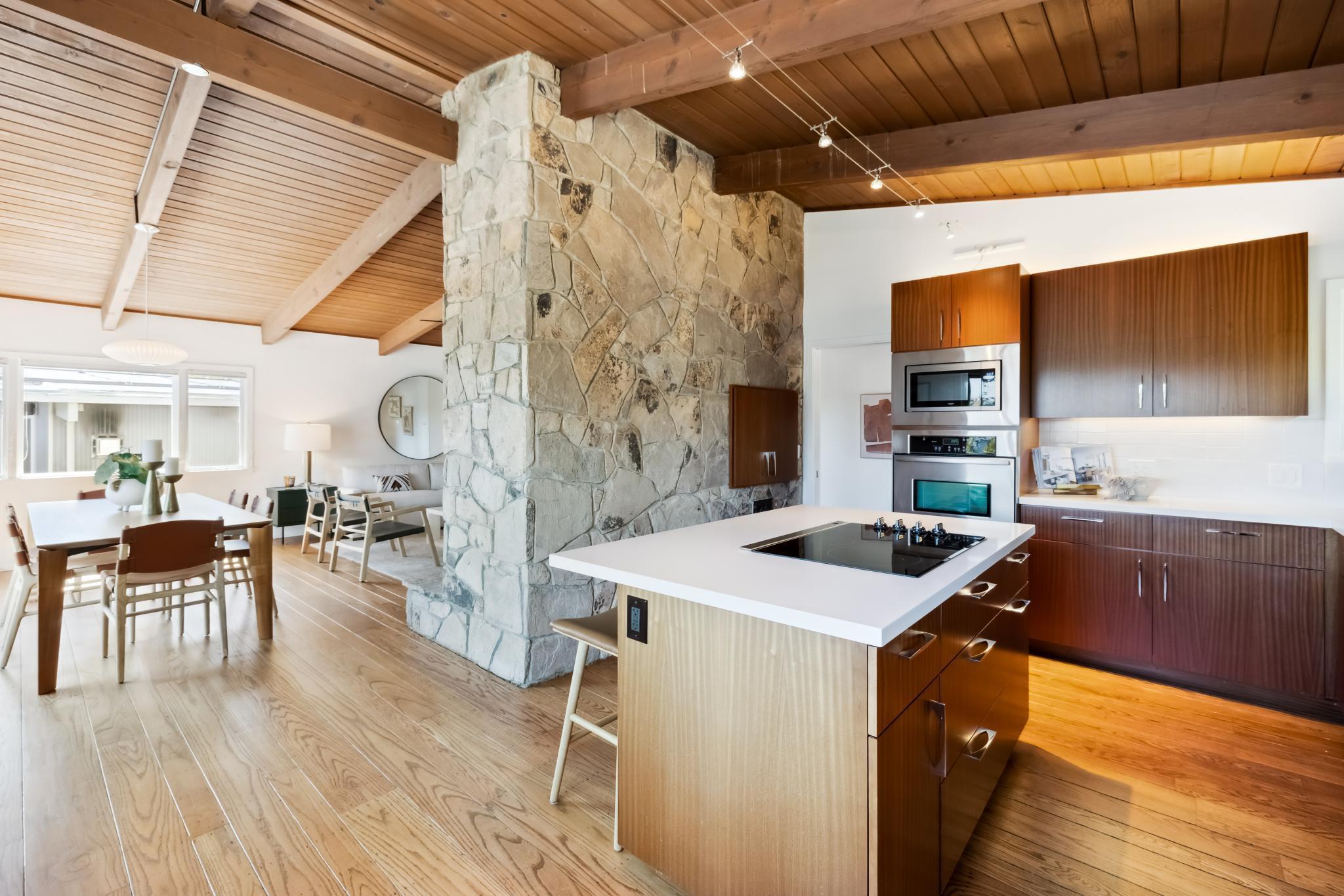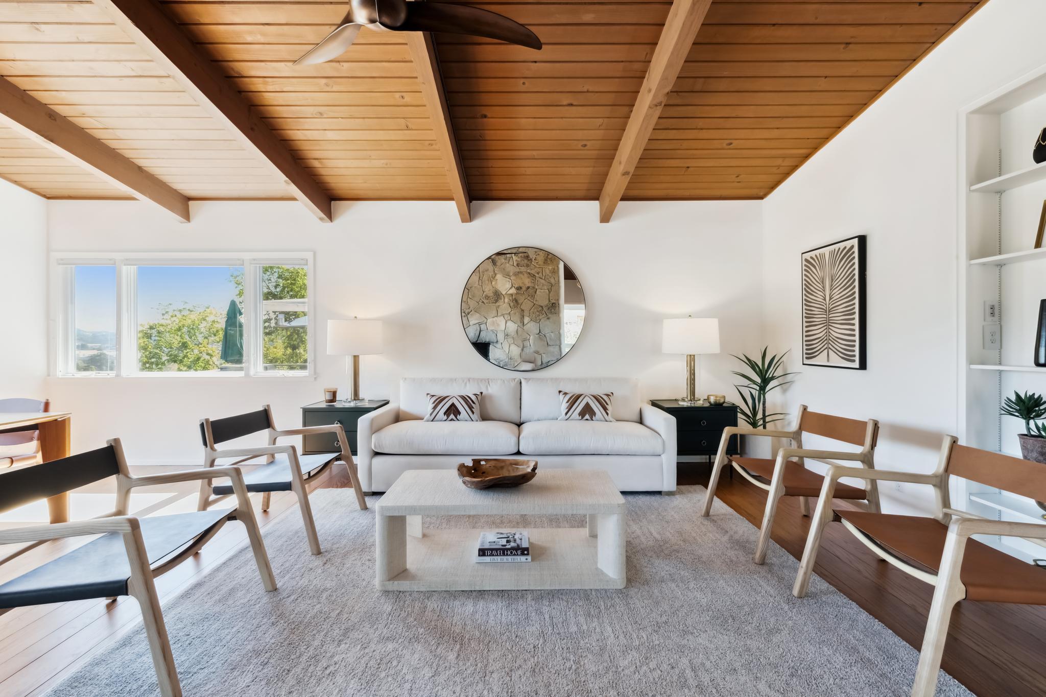 Enveloped in magnificent views, this sun-drenched home boasts soaring vaulted wood ceilings and a grand floor-to-ceiling Sonoma stone fireplace.The large-scale open floorplan with an abundance of windows welcomes the gorgeous surroundings into every room.