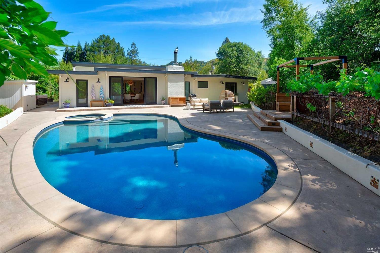 Masterfully designed indoor / outdoor flow makes this resort-style single level home irresistible with saltwater pool, hot tub, large level lawn, gas fire pit, an abundance of mature landscaping, vegetable gardens, pergola and extensive entertaining areas