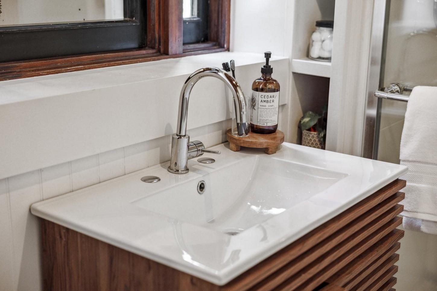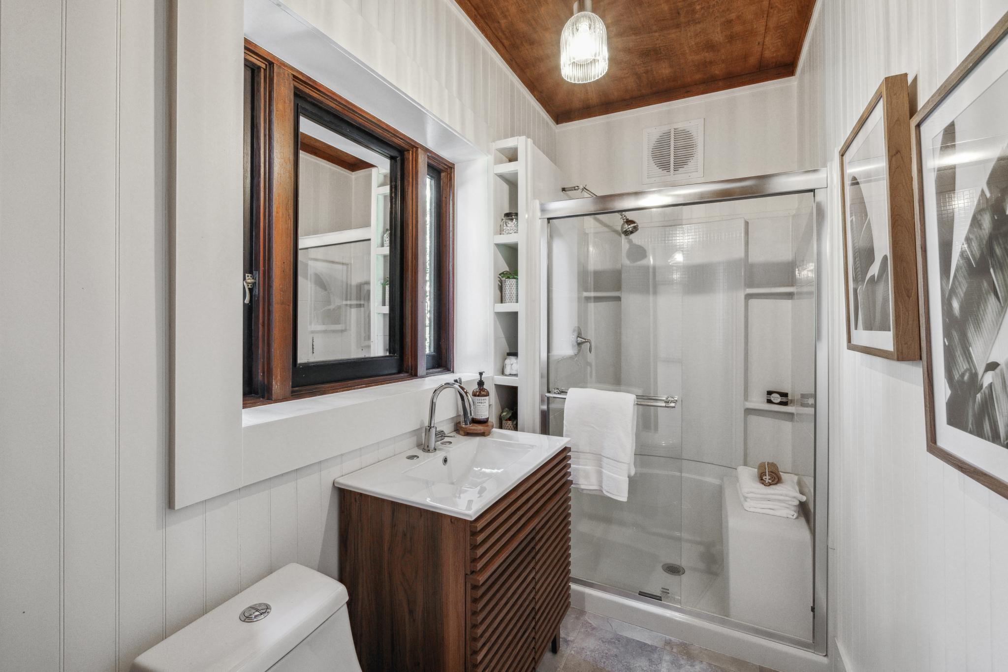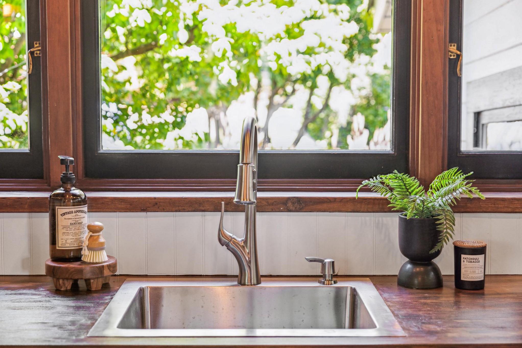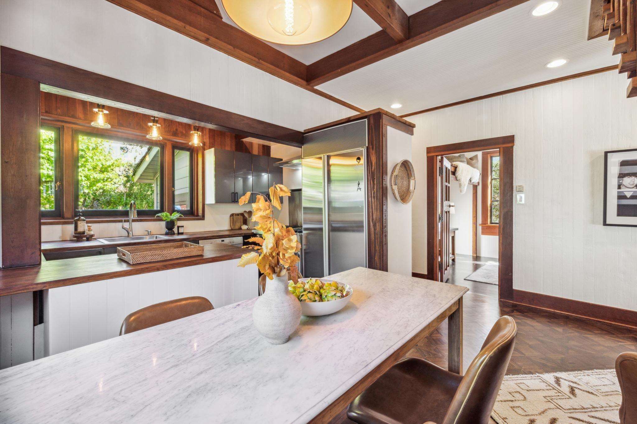 Butcher block counters, new sink, concrete floors, and picture windows all add to the inherent charm of this beauty.