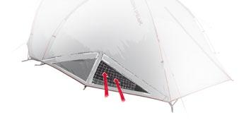 Das ausgetüftelte Vario-Vent-Control-System lässt sich bequem von innen mittels Reißverschlüssen variabel bedienen. Ein großes Gazefenster bringt Frischluft und kann, wenn es ungemütlich wird, einfach mit der Abdeckklappe verschlossen werden. Die Abdeckklappe lässt man einfach in eine Tasche fallen. Aufrollen passé. Bei geschlossener Abdeckklappe sind zusätzlich 2 Dauerventilationen für die Luftzirkulation vorhanden.