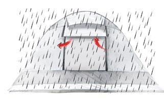 Der Zeltstoff ist mit einer Fluorcarbon (PFC)-freien wasserabstoßenden Imprägnierung (DWR) an der Zelthaut-Außenseite ausgerüstet.