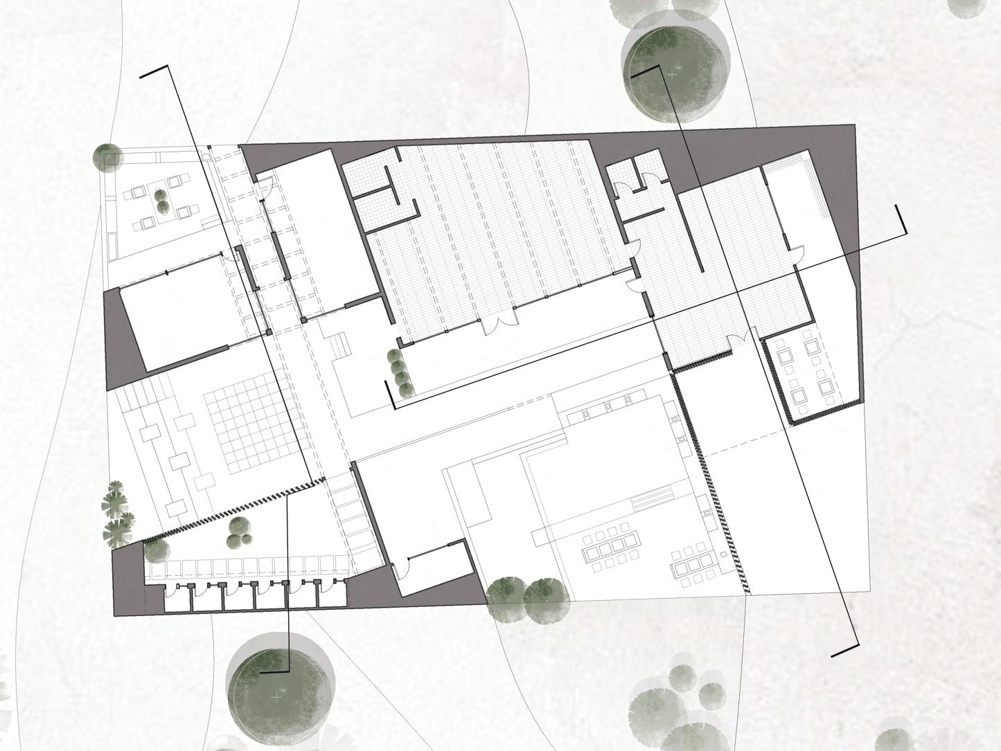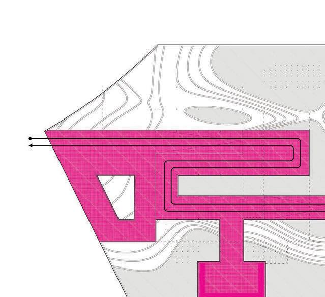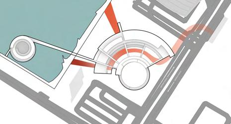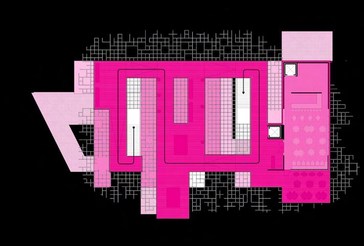 Creation of primary, secondary, and tertiary space to create a hierarchy between the two grids, and using them both as a connecting space.