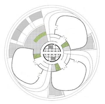 The tower is mainly using the flower as its concept. Not only do the individual floors resemble flowers but the tower itself is in the form of a bud. As well as imitating the physical forms, the tower also takes inspiration from the flower in more subtle ways. By using rotation and radial patterns as another key design component, the tower and podium create complex ad intricate spaces that serve to excite visitors. As vernacular Architecture being common in Singapore, the tower uses stilts throughout the podium and within the tower to create more ventilation and lighting. Both spaces have a strong relationship with each other while still providing unique experiences.