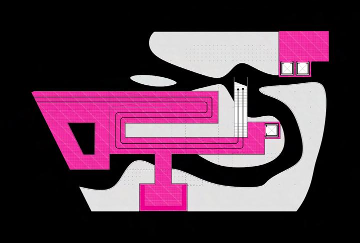 This project translates the suspended logic of the Wassily Chair into architecture, using the frame as a structural and spatial generator. A sequence of rotated bands hover above the ground, carving inhabitable rooms that are read through shifting alignments and layered perspectives. The circulation is intentionally unsettled: the stair is not a neutral connector, but a device of reorientation that interrupts equilibrium and makes the act of moving through space feel momentarily unstable. Like the floating seat of the chair held lightly within its tubular frame, these suspended volumes choreograph how the body negotiates balance, pause, and transition. Motion when slowed or redirected becomes visible as trajectory, turning passage into a spatial performance. Rather than treating display as backdrop, the gallery becomes both container and subject, allowing visitors to inhabit the threshold between structure and void. In this way, suspension is not merely visual; it is embodied, experienced through shifting weight, hesitation, and the subtle instability of ascent.