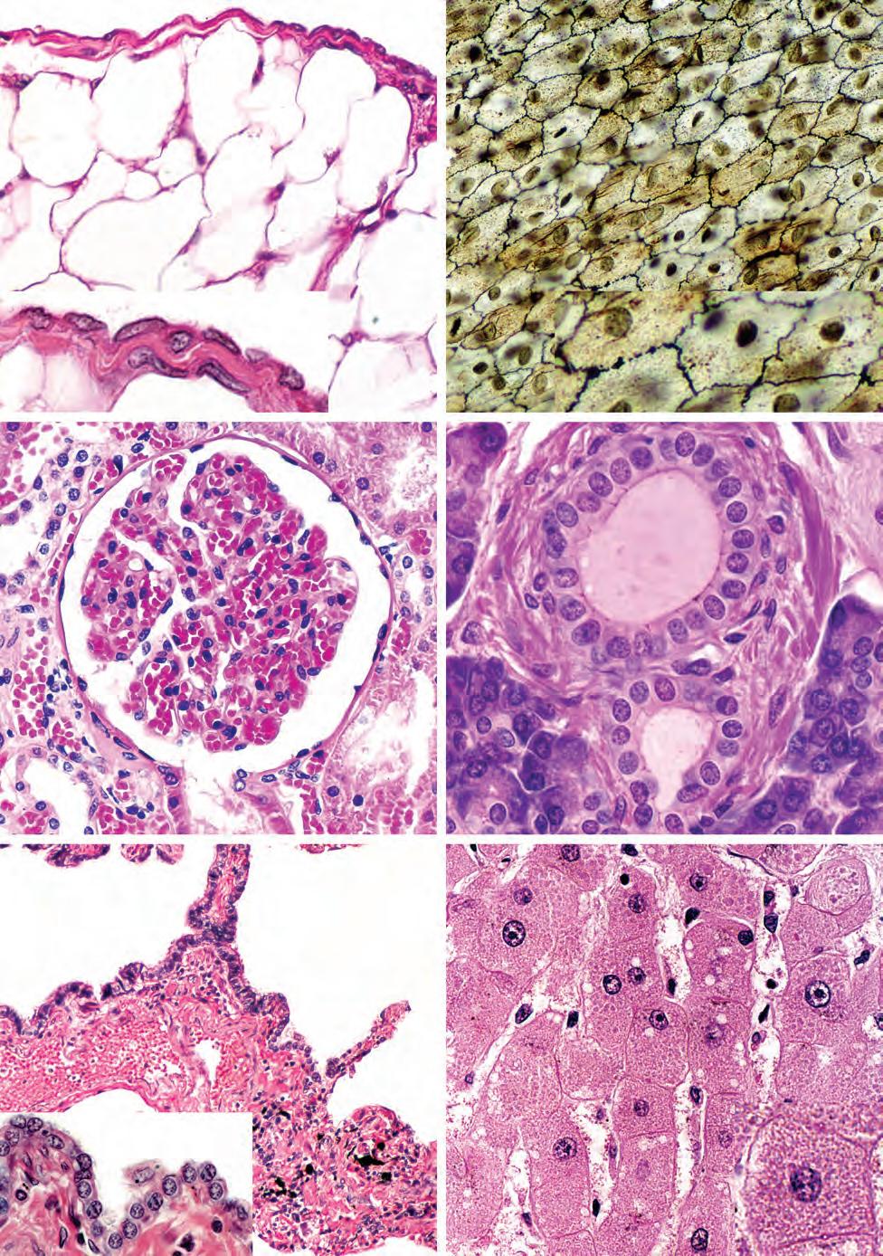 Epitelio cubico semplice, polmone, essere umano; EE, 175×; inserto, 525×
