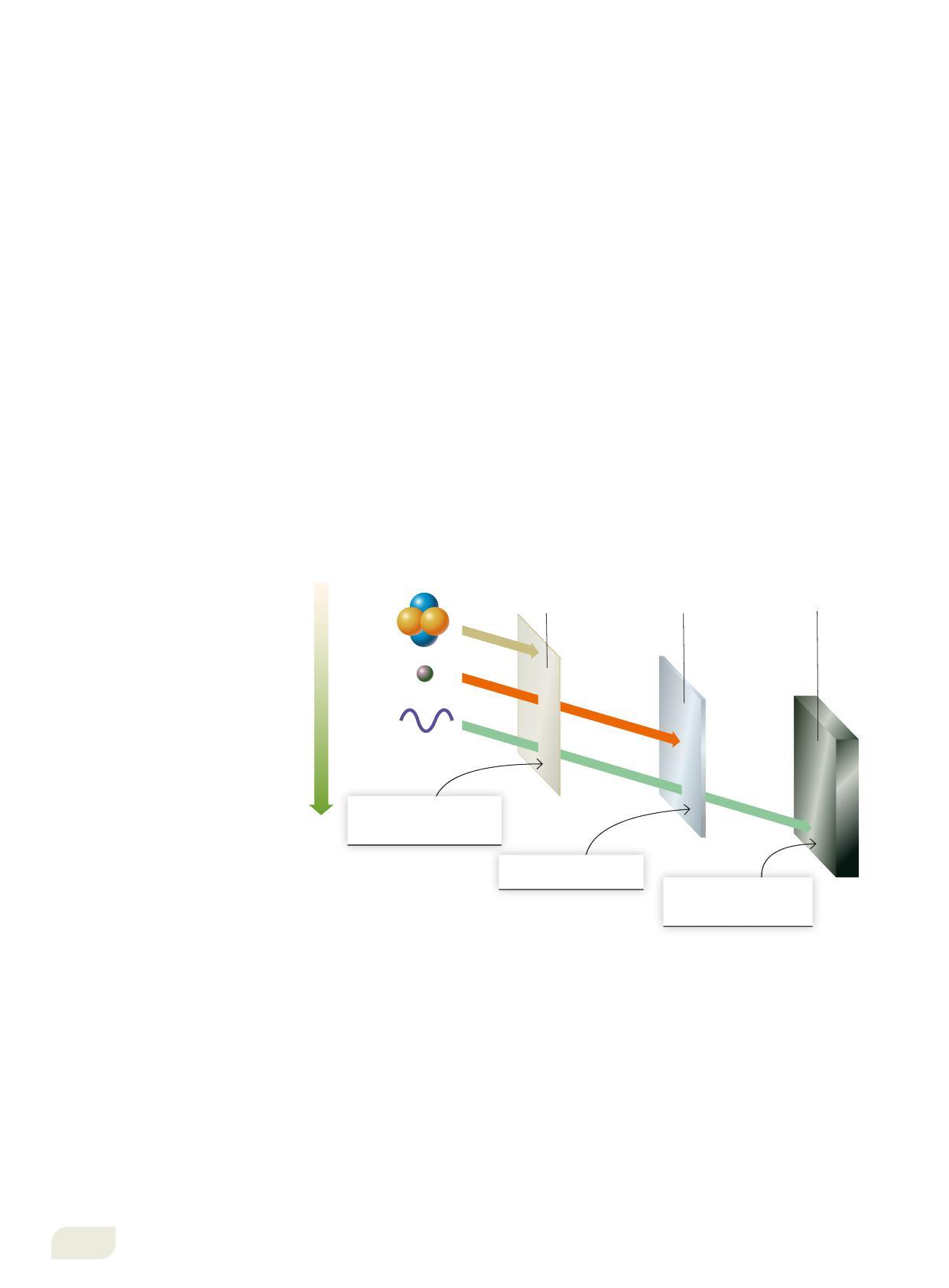 Le particelle alfa erano i proiettili ideali per scandagliare la struttura dell’atomo e Rutherford elaborò un esperimento nel quale queste particelle andavano a colpire gli atomi di un sottilissimo foglio d’oro, dello spessore di 0,01 mm. Dopo aver colpito la lamina d’oro, le particelle alfa, invisibili all’occhio umano, venivano raccolte da uno schermo in grado di evidenziare la loro presenza (Figura 6). In base al modello atomico di Thomson la distribuzione uniforme della massa e delle cariche nello spazio avrebbe dovuto deviare di poco la traiettoria delle particelle con carica positiva sparate a grande velocità.