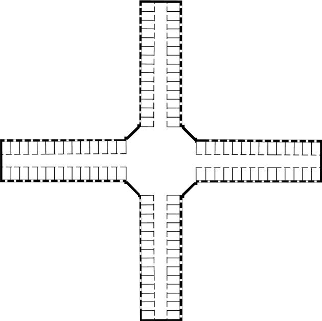 This model of a prison that was proposed but never built in 1922 displays elements of control. It has a central observation tower, a massive grand entrance to instill fear and the continuous reptition of windows on the façade mark the endless monotony of time. This plan still utilizes the panopticon, and the holding cells branch out. This was meant to be a more humane proposal. Perhaps it is possible to use this design as a measure.