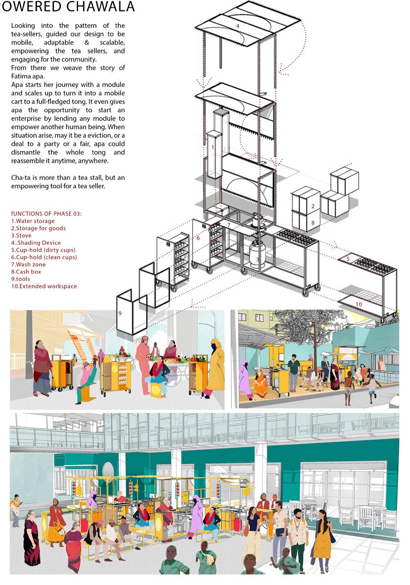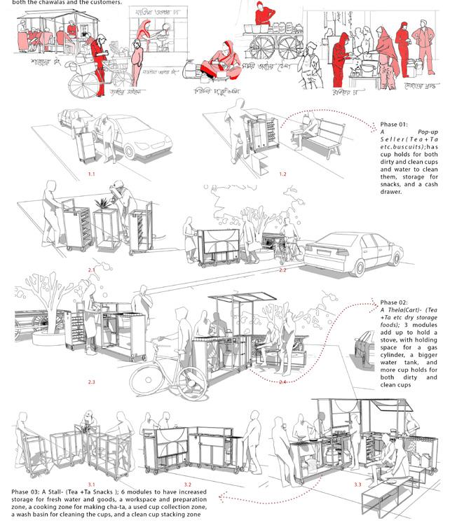 All of them wished for something more. Some hoped for a cart, some were looking for more goods to sell, as in tong, and some of them wanted mobility to attract more customers and be assured of being able to move and continue selling when evicted. And all of them looked for more customers who were in for cha-ta and addabaji. It guided our design to be mobile, adaptable, and scalable, empowering our tea sellers and engaging the community, which will be rewarding for both the chawalas and the customers.