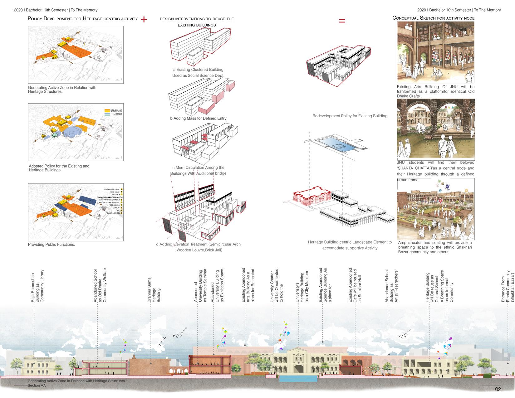 The site is complex in nature, mainly due to its diversity of uses and stakeholders. The design proposal must have the resolution to mitigate the conflict of interests and uses and develop a background for harmonious coexistence . In parallel to revive, restore and preserve the historic building, it is also important to host the functions which were already there. Redevelopment of the complex creates opportunities for introducing new functions as well. Hence, the need for communal prayer space for worshippers including women, rearranging and redesigning the bookshops, a democratic public plaza, research and knowledge hub are addressed in the
