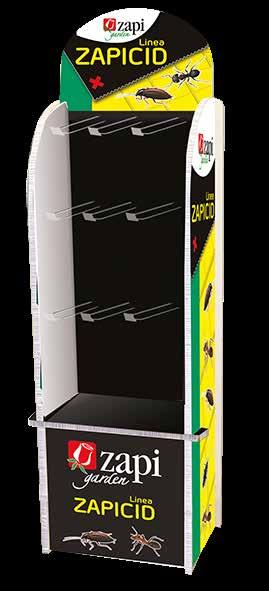 • Zapi Garden è il marchio storico dell’azienda e leader in Italia nel canale specializzato Home&Garden grazie ad un’offerta di oltre 250 referenze di prodotti per la lotta ai parassiti domestici e per la cura del verde, con una distribuzione in oltre 3500 negozi di agraria, consorzi e garden center e una rete di oltre 30 agenti.