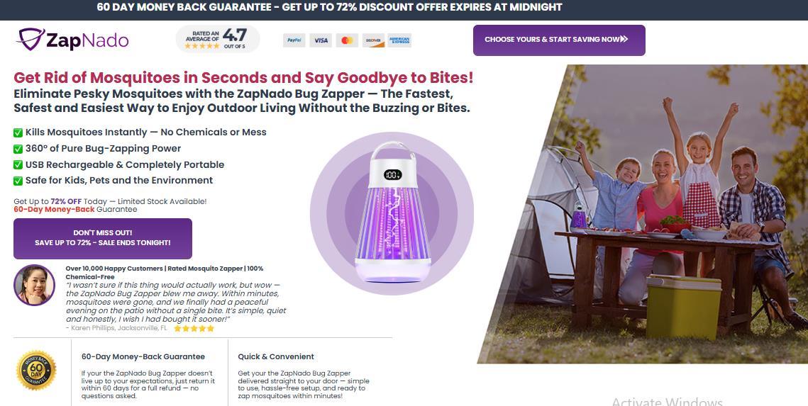 Whether you’re hosting a gathering, enjoying quiet evenings, or planning a camping trip, the ZapNado Bug Zapper promises to be a reliable companion. Its impressive features, including 360° coverage, USB rechargeability, and waterproof construction, ensure that it meets the demands of modern outdoor lifestyles. With attractive pricing and a 60-day money-back guarantee, there’s no better time to invest in this essential outdoor tool. Don’t let mosquitoes ruin your enjoyment; choose the ZapNado Bug Zapper and experience the difference for yourself.