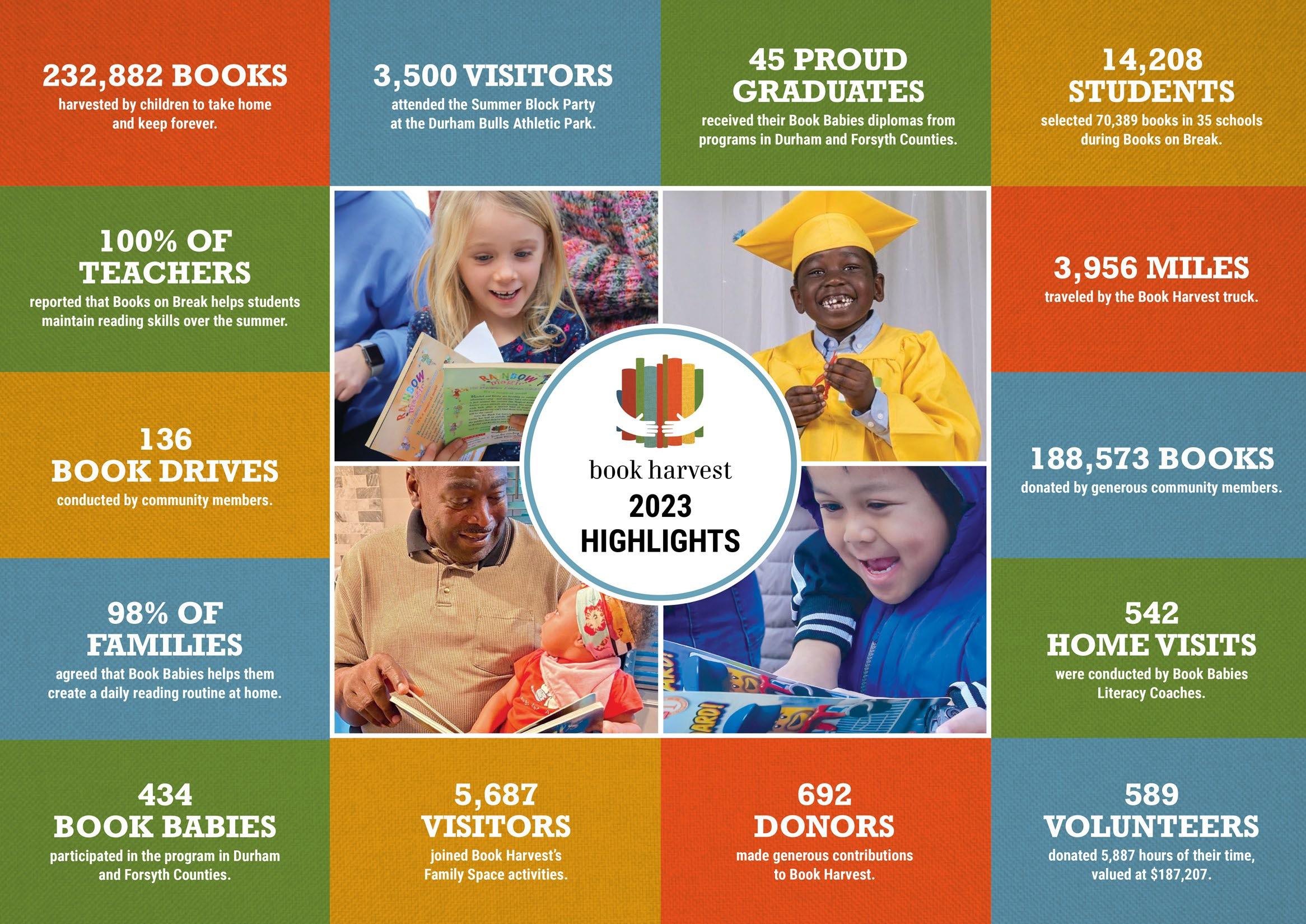 Under the able and visionary leadership of Book Harvest Durham Executive Director Tabitha Blackwell, we showed up more than ever before for Durham’s children and families – always with an abundance of excellent books for children and families to harvest. Durham is our very own City of Books!