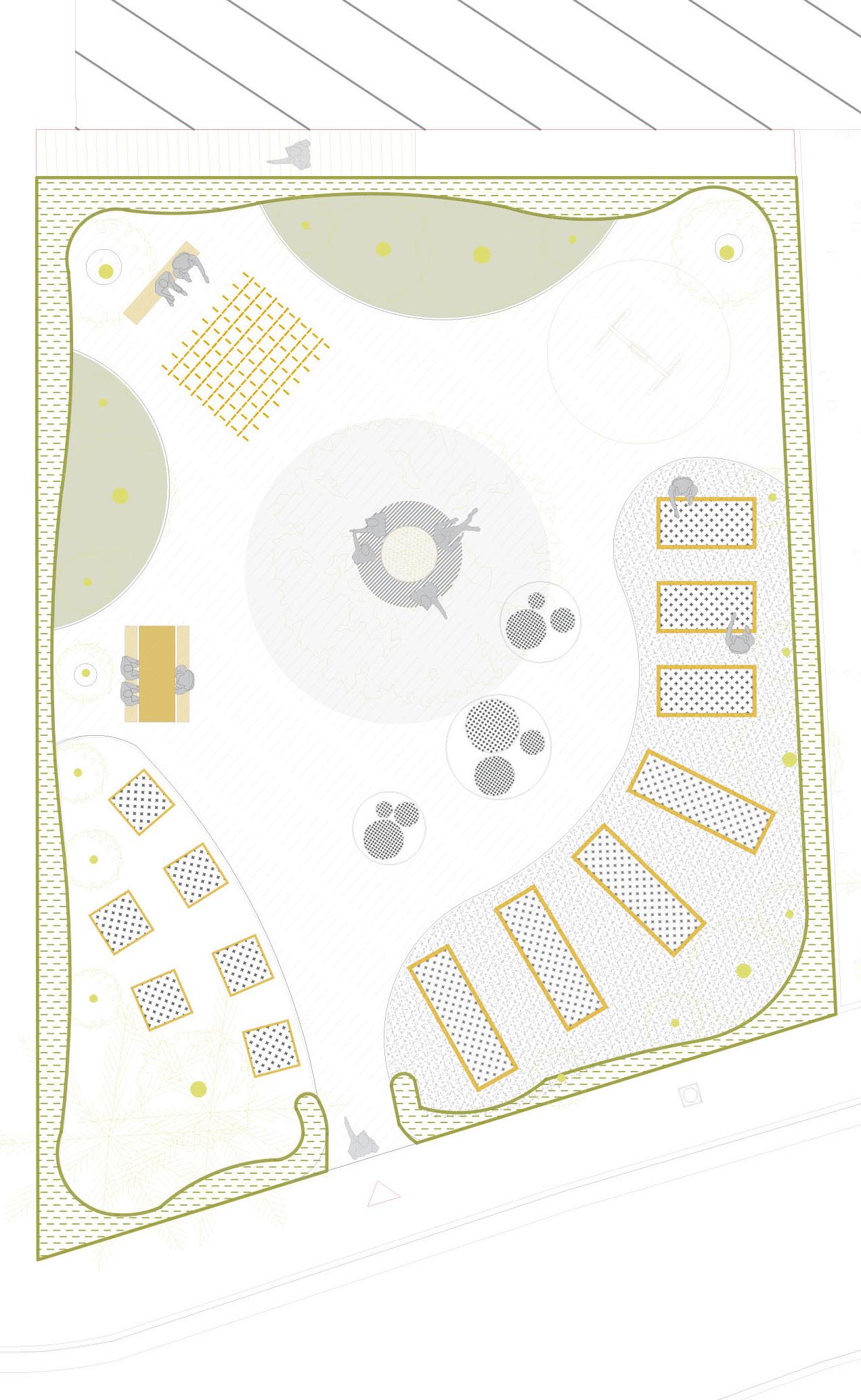 This space will be dedicated to experimentation, with the installation of vegetable gardens for the cultivation of various species of aromatic plants and fruit trees. The second function will be to create a relaxation area including an urban chessboard and furniture.