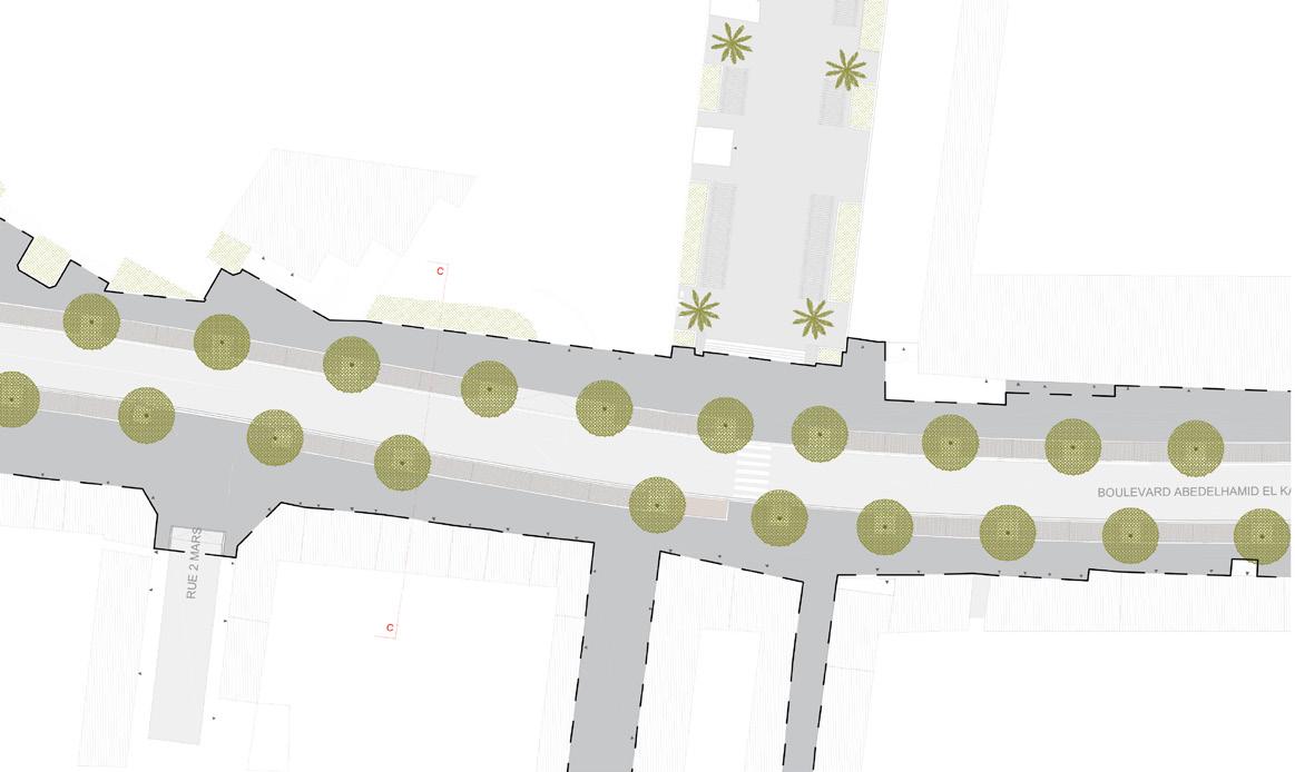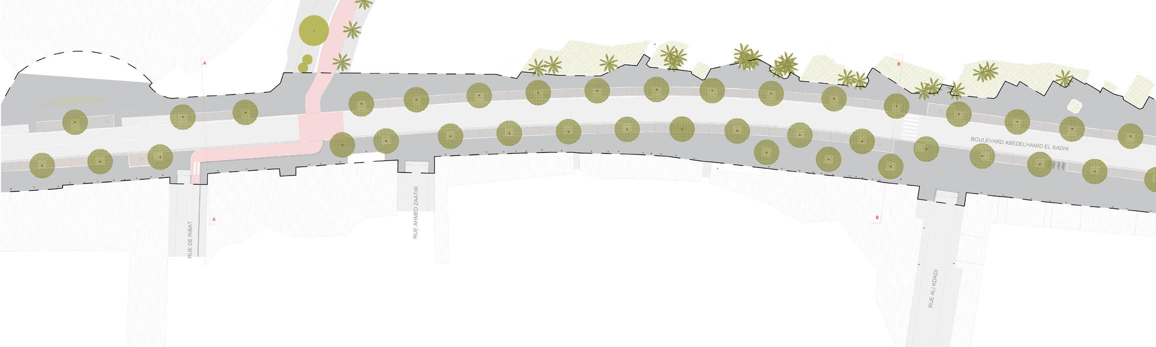Our mission at ALEAOLEA was to design this avenue in accordance with international standards. The urban intervention on Bel Kadhi Avenue aimed to enhance the experience of soft mobility, organize vehicle traffic, and intermittently integrate green spaces