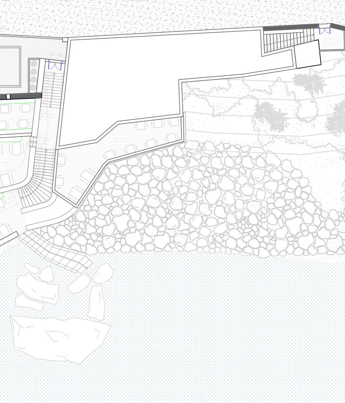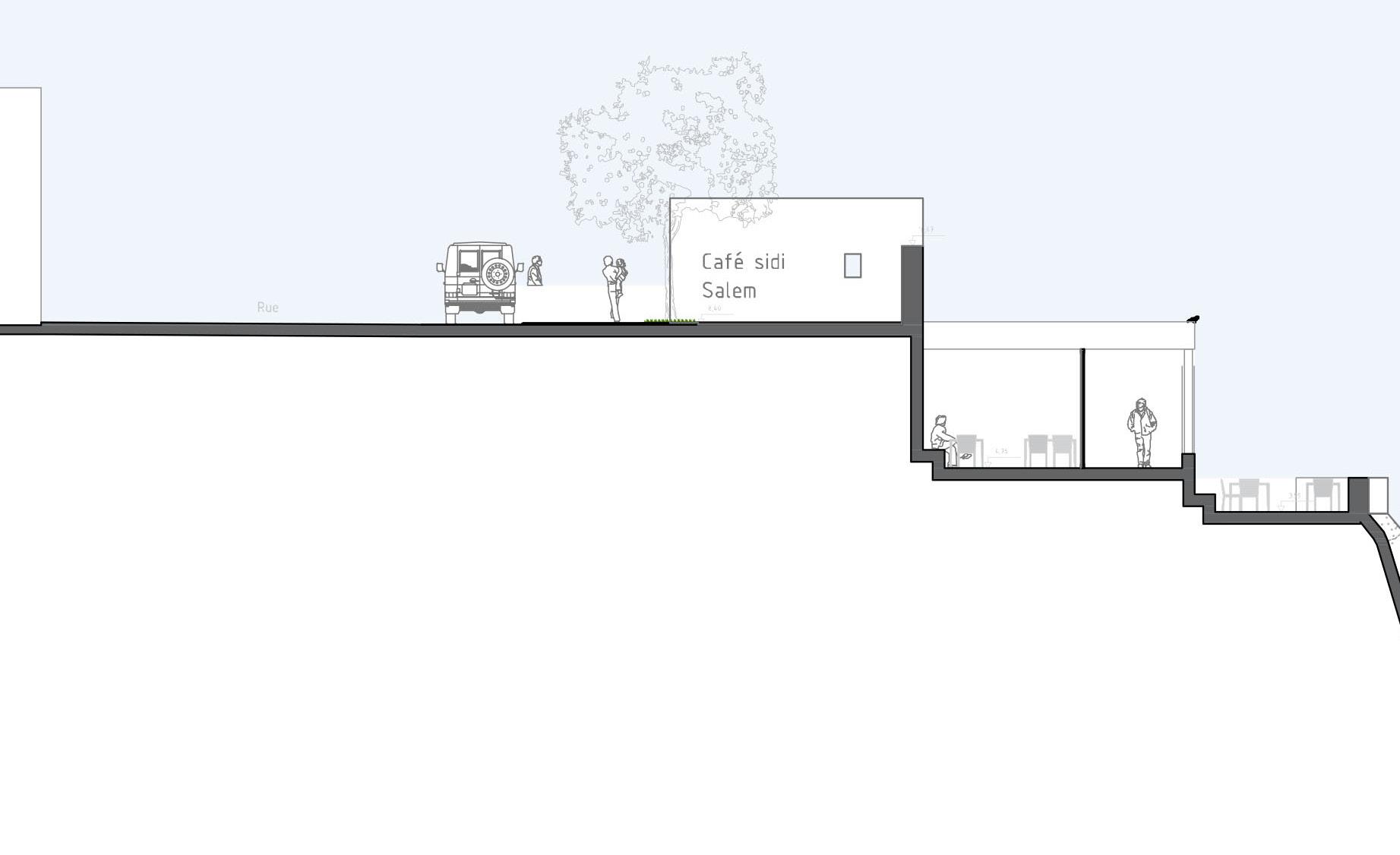 Our intervention within ALEAOLEA aimed to rehabilitate this café while preserving its authenticity and respecting its context and environment. The main focus was on reorganizing the stairs, a characteristic element of the café, as well as redesigning certain covered areas of the establishment.