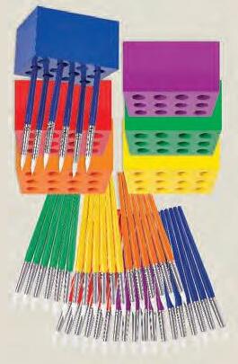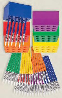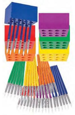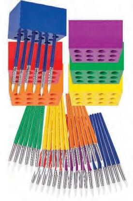 Create an effective and organised classroom and encourage your students to put equipment away with this clever table set. These quality Taklon Brushes store neatly into the block holders, with room to store pens, pencils, scissors and brushes. The six brush handles are colour coordinated to match the six coloured blocks. A must-have mangement tool for the savy teacher! This kit includes: