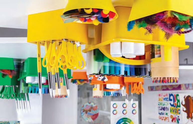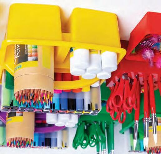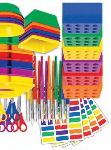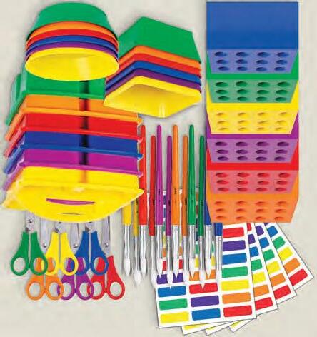 Create an effective learning space by organising your classroom tables and materials by colour! This colour-coordinated set keeps your brushes, scissors and students organised!