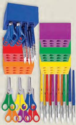 Create an effective and organised classroom and encourage your students to put equipment away with this clever table set. These junior scissors effectively store neatly and safely into the block holders, with room to store pens, pencils and brushes. The six scissor handles are colour coordinated to match the six coloured blocks. A must-have mangement tool for the savy teacher!