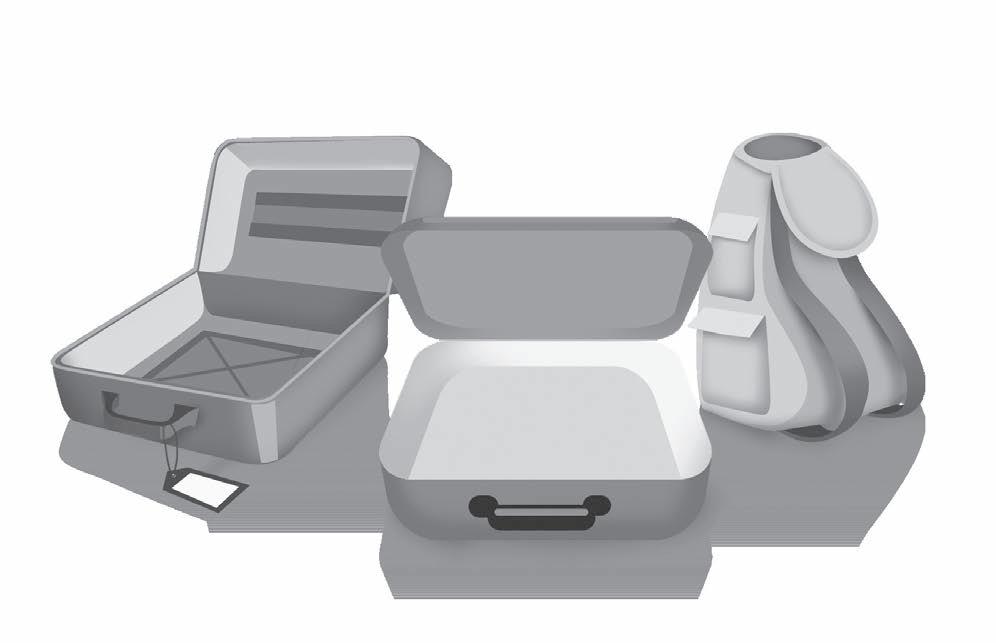 Preparing for a holiday Marcia, Tania and Michael are preparing for a holiday. There are some things in the box and two open suitcases and one backpack in the pictures. Look at the items in the box and put them in the right place.