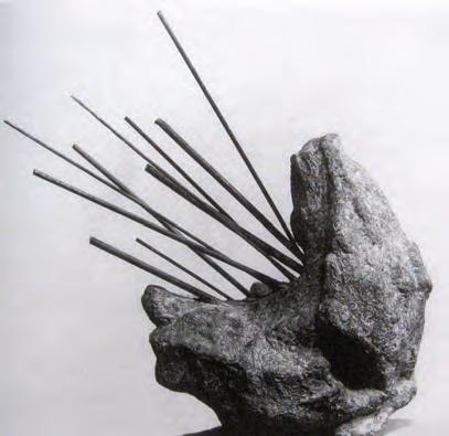Ova skulptura oblikovana je od betona i metalnih cijevi. One su jednim krajem udjenute u beton.