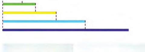 Odnosi proporcija u zlatnom rezu: crvene prema zelenoj, zelene prema žutoj, žute prema svijetloplavoj, svijetloplave prema tamnoplavoj.