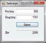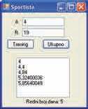 ocena /= (m * n); textBox1.Visible = true; textBox1.Text = “Prosecna ocena odeljenja je:“ + ocena.ToString(“0.00“); }