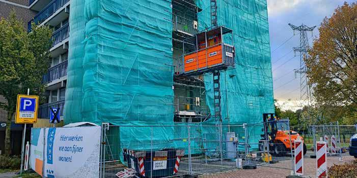 Half september zijn we gestart met het herstel van het betonrot bij de eerste gevel van de Hoge Slagen. Hiervoor moest eerst de buitengevel in zijn geheel worden verwijderd. Na het herstel, dat een aantal weken duurt, gaan we isoleren en metselen we een nieuwe buitenmuur. Dat gaf natuurlijk overlast die we niet konden wegnemen. Wel organiseerden we een gezellig en ontspannen momentje voor de bewoners. In december ronden we de werkzaamheden aan de eerste gevel af.