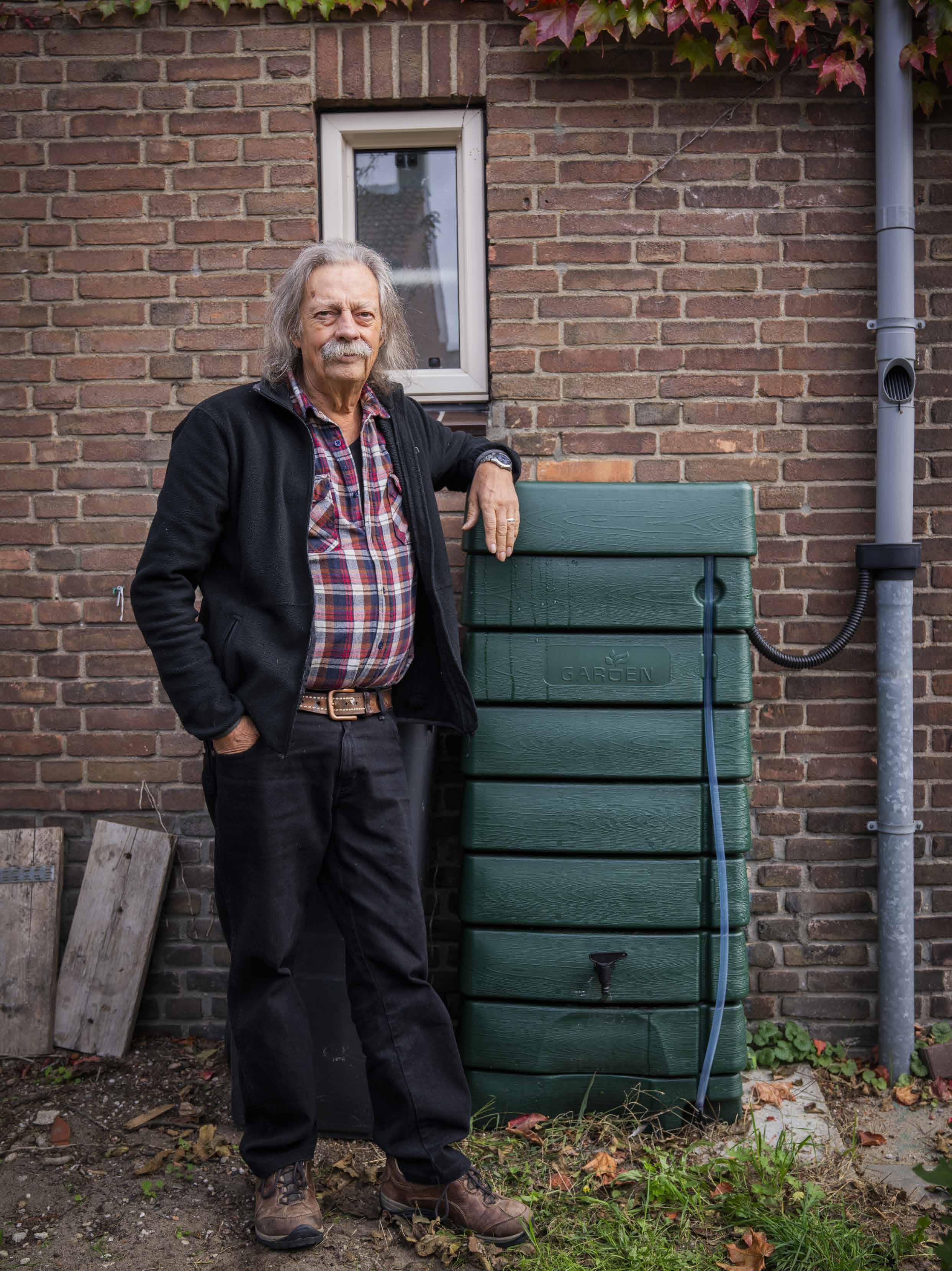 “Mijn vrouw en ik doen ons best om de natuur en het klimaat een handje te helpen. Waar veel buurtgenoten hun tuin bestraten, kiezen wij voor groen. Met inheemse struiken, insectenhotels, drinkbakken, vogel- en egelhuisjes proberen we zoveel mogelijk dieren naar onze tuin te lokken. Ook hebben we zonnepanelen, koken we elektrisch en scheiden we ons afval. Dus toen we hoorden dat ze op onze woning een biobased dak wilden leggen, waren we daar meteen voor in. Het was een heel gedoe en niet alles ging in één keer goed, maar we zijn blij met het resultaat. We komen niet veel op zolder, maar we hadden afgelopen zomer wel het idee dat het boven langer koel bleef. We zijn vooral benieuwd naar de daling van ons energieverbruik in de winter. De nieuwe buitendeuren sluiten een stuk beter af, dat scheelt veel tocht. De regenton die Van Wijnen voor ons heeft aangesloten, zorgt ook voor een mooie besparing. Nu hoeven we geen leidingwater meer te gebruiken om de bloembakken water te geven.”