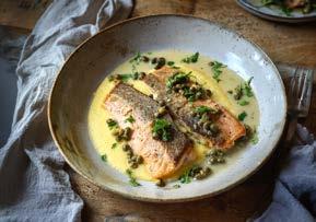 Pečena postrv v smetanovi omaki s kaprami
