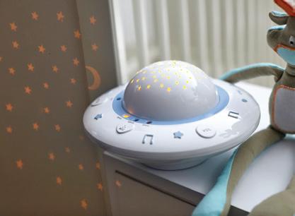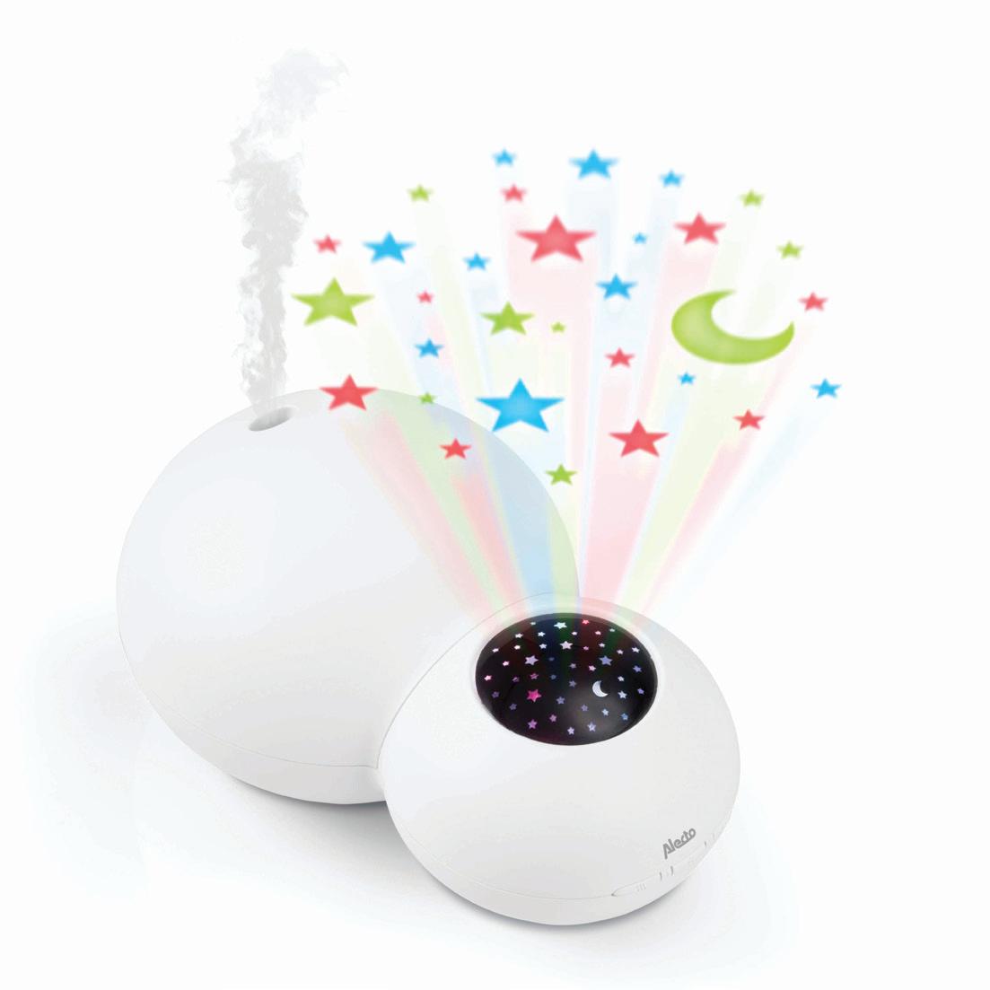 Προτζέκτορας baby με θέμα τον νυχτερινό ουρανό από την Alecto! Προβάλλει στην οροφή του παιδικού δωματίου όμορφες, πολύχρωμες και ζωντανές εικόνες του έναστρου ουρανού υπό τη συνοδεία απαλής, χαλαρωτικής μουσικής. Έτσι καθησυχάζει το βρέφος εξασφαλίζοντάς του ήρεμο, ευχάριστο και γαλήνιο ύπνο κάθε βράδυ. Επιπλέον, χάρη στη λειτουργία LED φωτισμού αλλά και στη