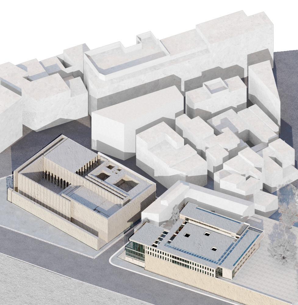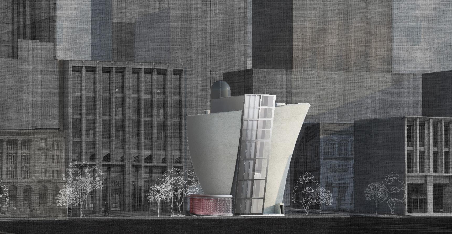 This new International Center for Literature is to be made as an “ Extension” to Giuseppe Terragni’s Danteum, designed in 1938 and—for purposes of this project—presumed to have been built by 1942 on its proposed site at the northern edge of the ancient Roman Forum, between the Colosseum and the Capitoline Hill, and on the Esquiline Hill adjacent to the Domus Aurea.