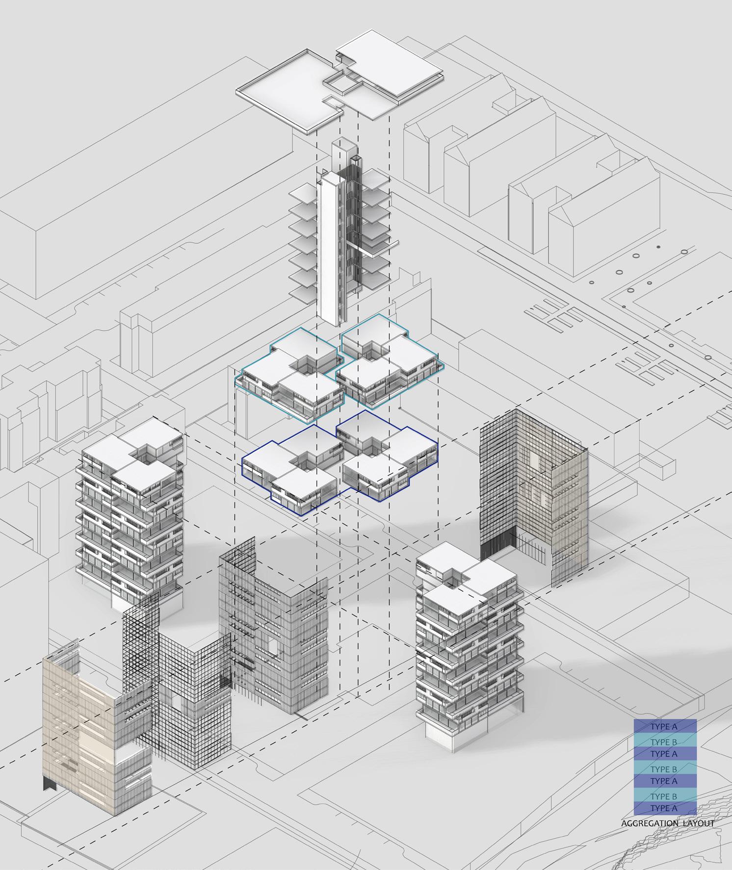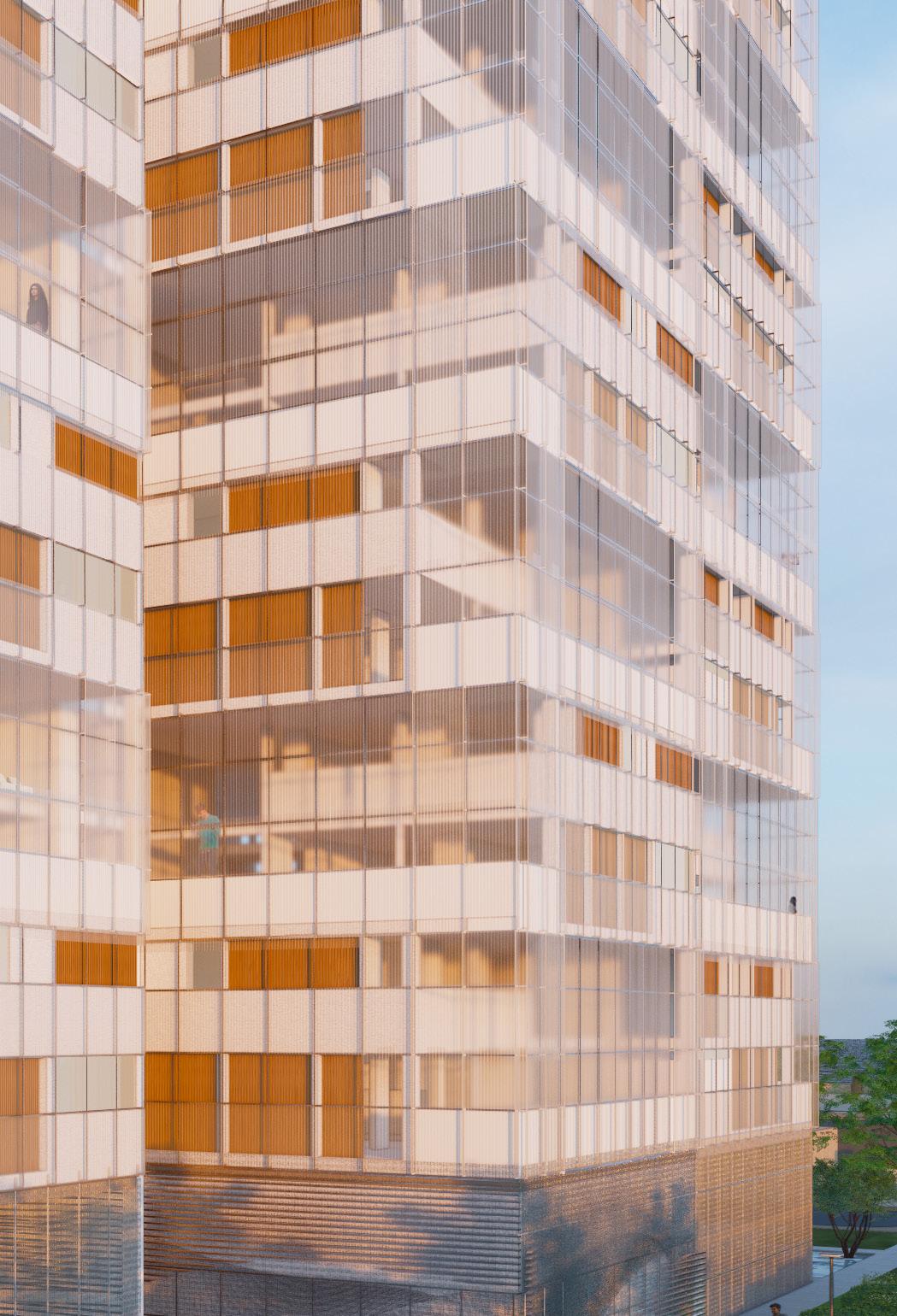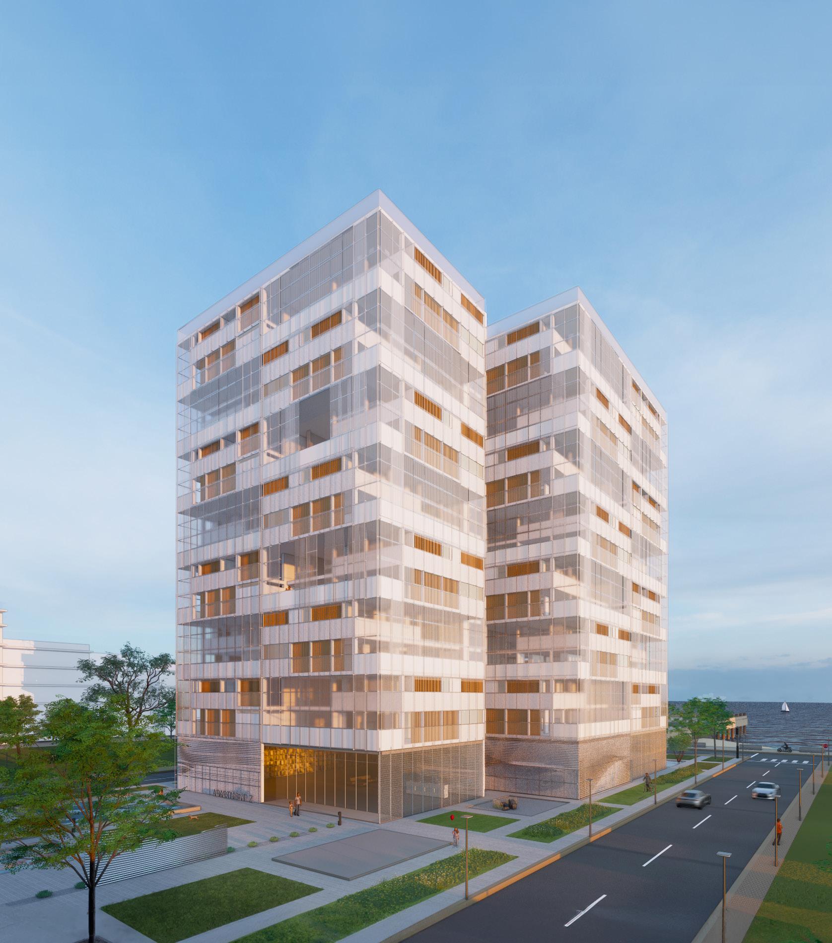 The design logic of the project extends from the interior to the exterior, shaping it into a 15-story building formed by the overlapping of two types of aggregated layouts