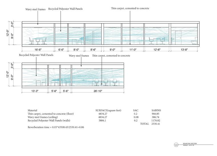 Coordinated team efforts on drawing sets (Plan/RCP/Electricity/Safety, etc.), facade shading analysis with Grasshopper, and acoustic analysis (part)