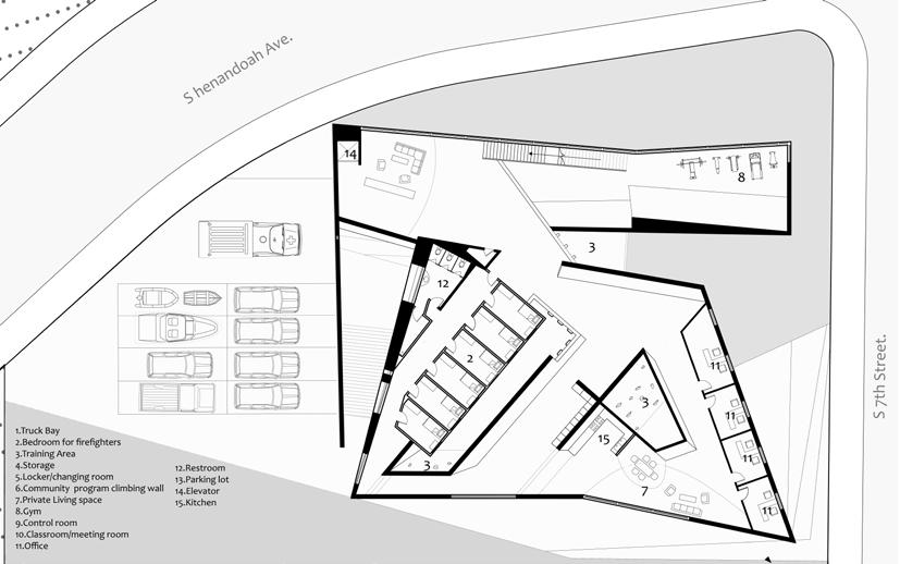 Fire stations hold a complex arrangement of individual and collective programs with programmatic constraints but the opportunity for formal variety. This project investigates the coordinated sequence of activities throughout the fire station to understand the spatial relationships from the interior environment to the broader urban context. The space will be grappled with organizational strategies for storage, equipment maintenance, adjacencies, and collective living spaces – explored in both plan and section. As evident in the title, The Residence Public, the designer will be as a choreographer, emphasizing issues of space and form tailored to both individual and collective activity.