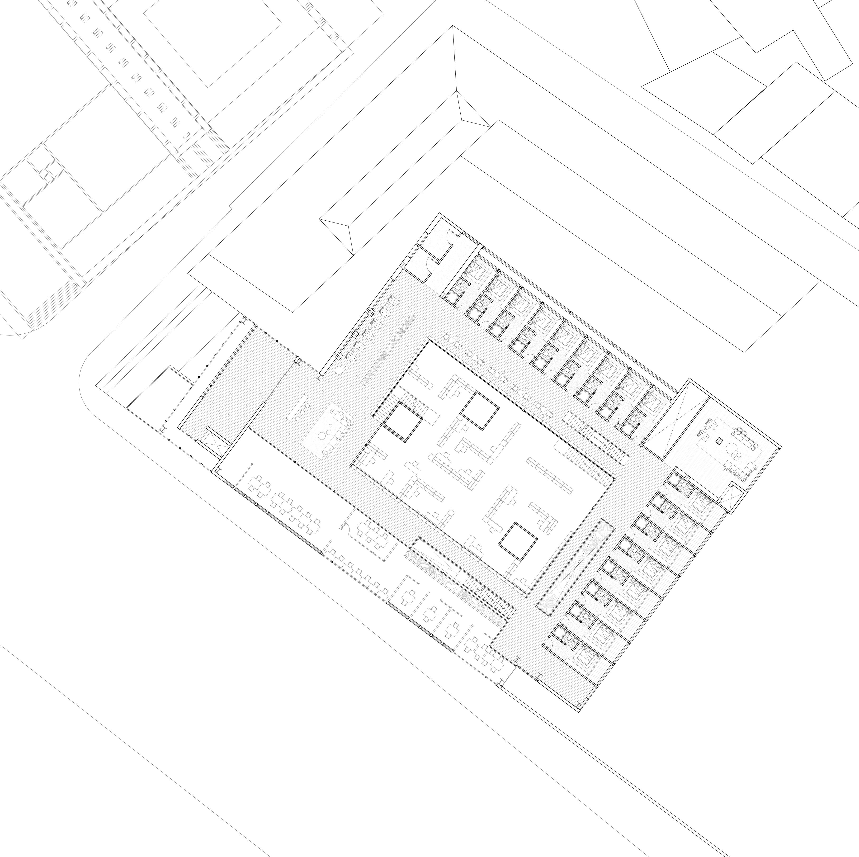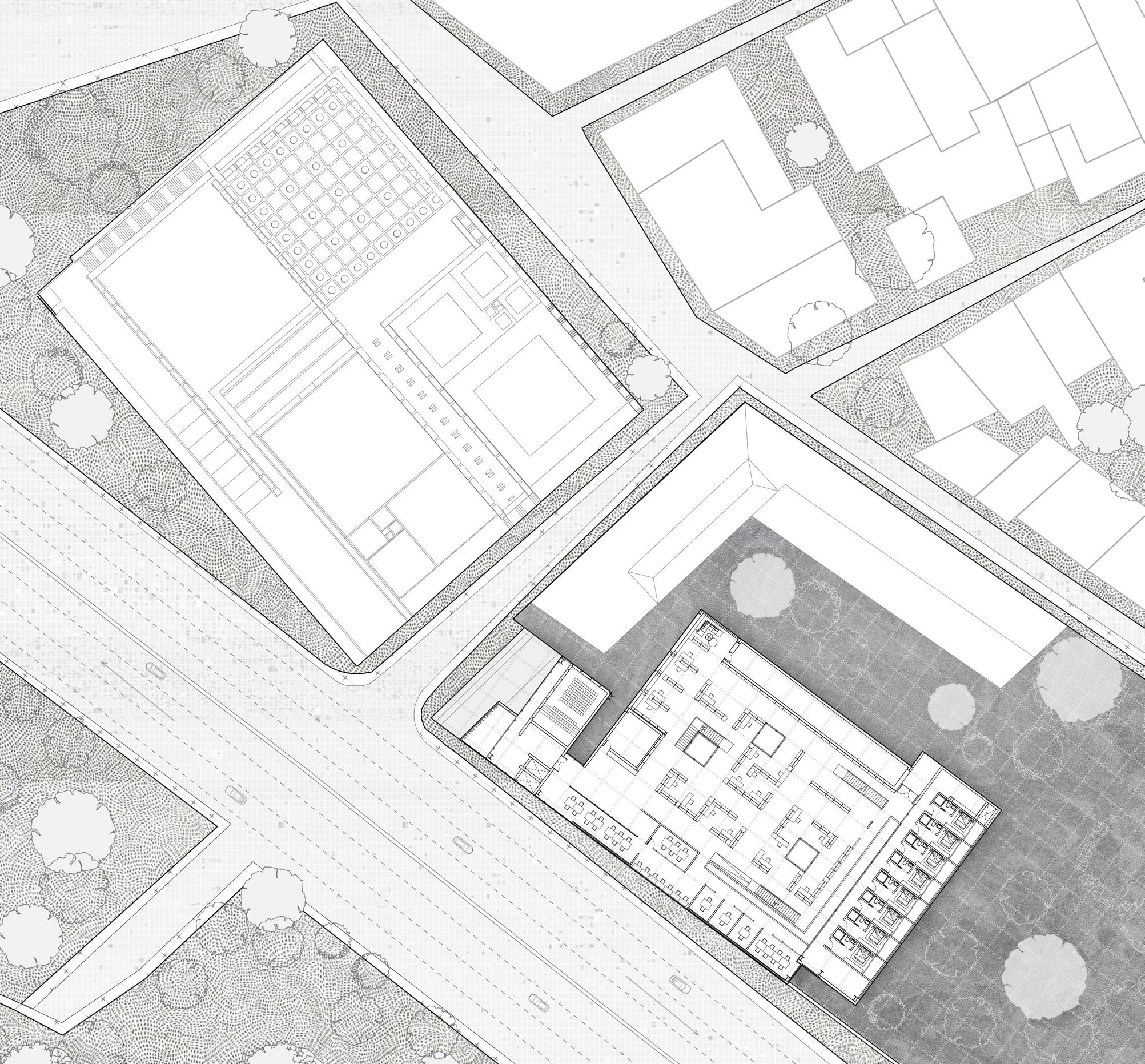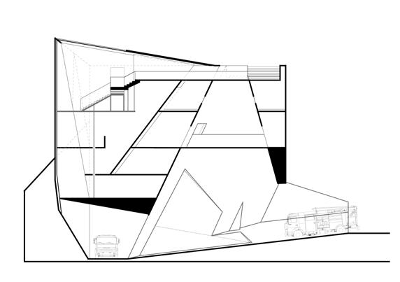 The spatial relationship developed around the keyword OVERLAP, in tend to gain a higher-efficiency spacial relationship between public and private spaces. The huge inclined space communicates the atrium, the plaza and the training space for firefighters.