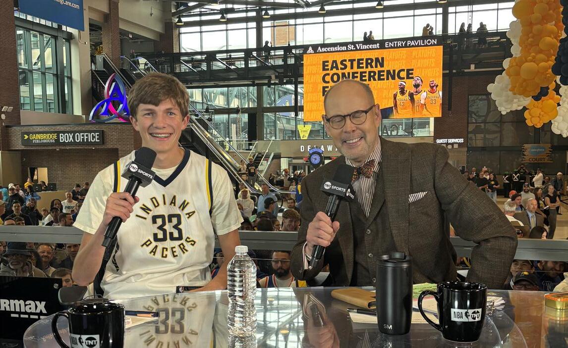 Meeting sports commentator Ernie Johnson, Sam Longenberger (11) attends Game 3 of the Conference Finals on May 25. Photo submitted by Longenberger