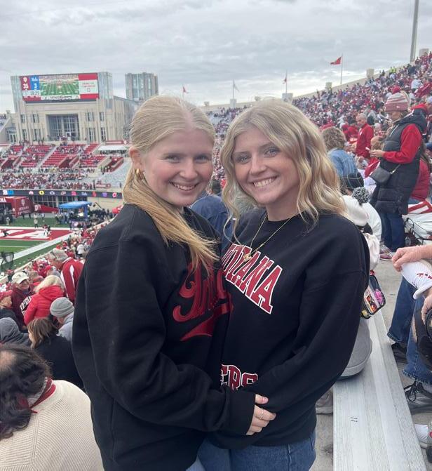 At the IU football game against UCLA, Harper Hyslop (12) and Hudsyn Hyslop (10) pose for a photo on Oct. 25. IU beat UCLA, 56-6, maintaining their undefeated season.