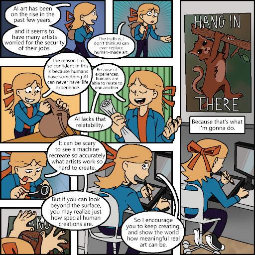 Art is not about the result as much as it is about the journey and the emotions behind it, which AI can never truly replicate. Because of this, human-made art will always mean more.