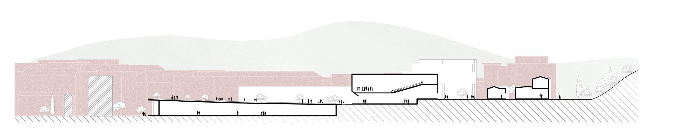 Recycling Center Theater Art Town Transitional park Section AA' (1:500) Sports Center Senior Center Opera Tea House Transitional Park Section BB' (1:500) Residential Buildings Market Shops Heritage Park Transitional Park Section CC' (1:500) Long Section (1:1000) A B C A' B' C' Transitional Park Transitional Park Museum Dama Lane Market Street Dama Lane Market Street Senior Center Opera Tea House Ramp Square Street Corner Plaza Residential Buildings Hotel Market Shops