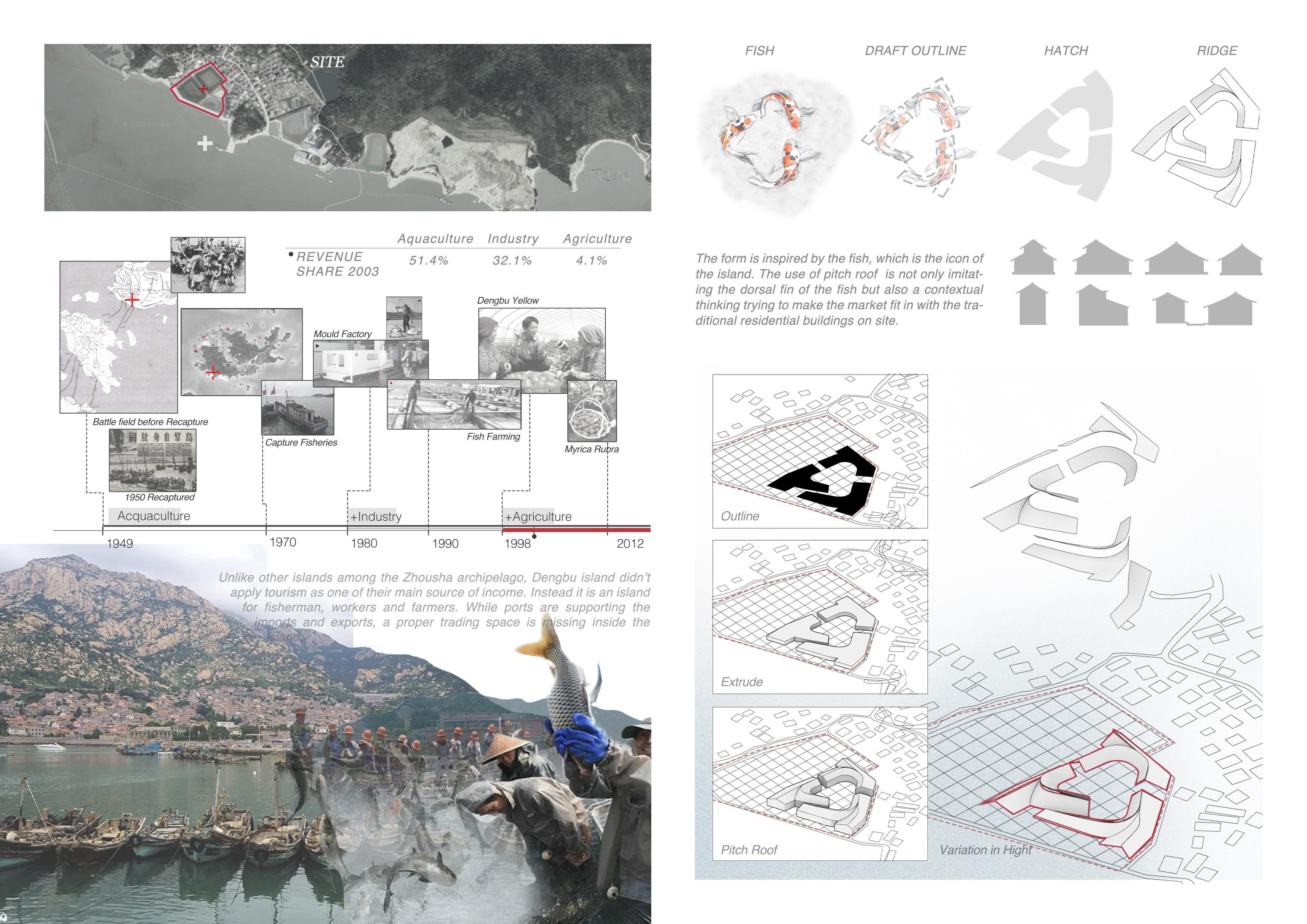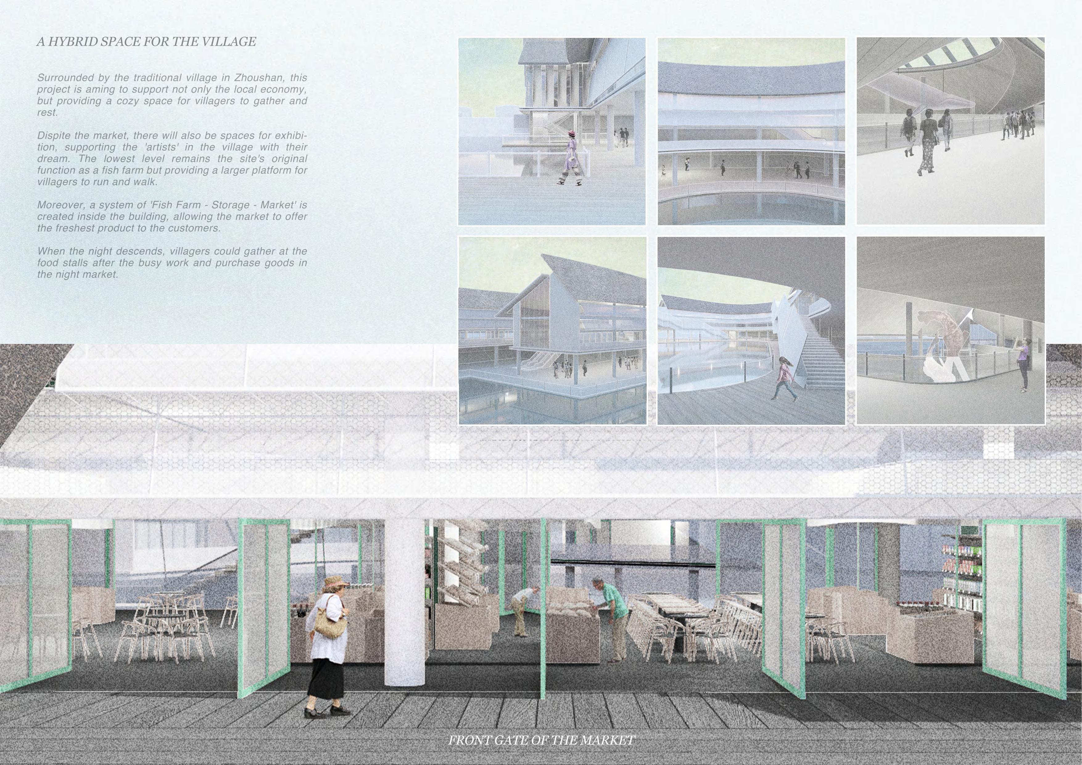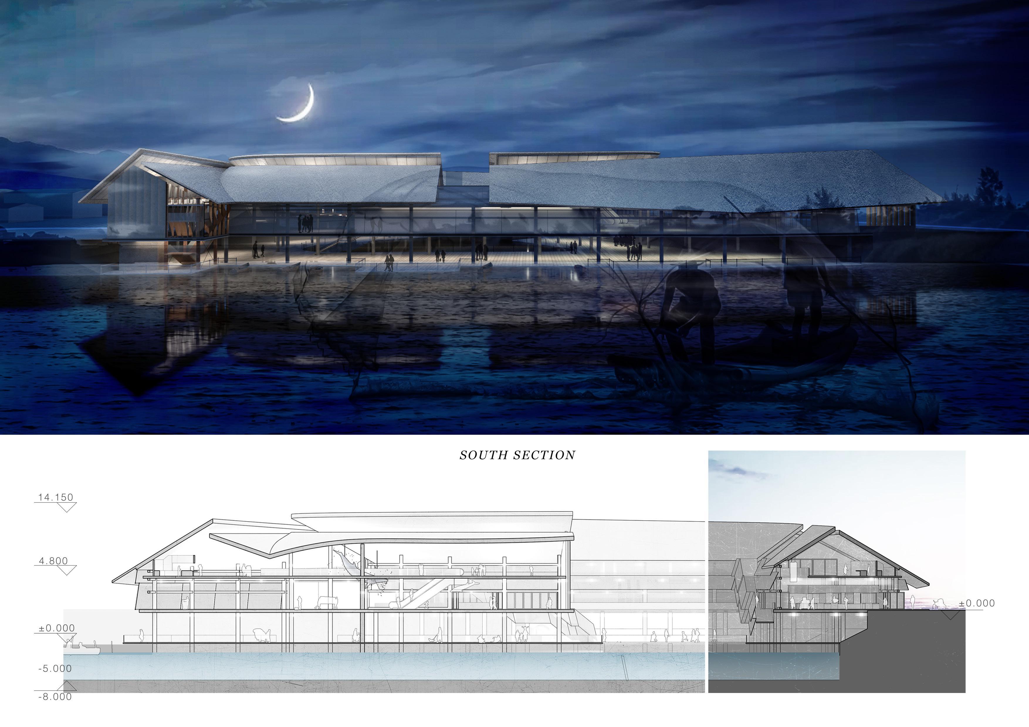 The market kept the original function of the site as a fish farm with a new designed space including a market, a museum and a storage area setting above the farm to provide a better gathering space for the villagers.