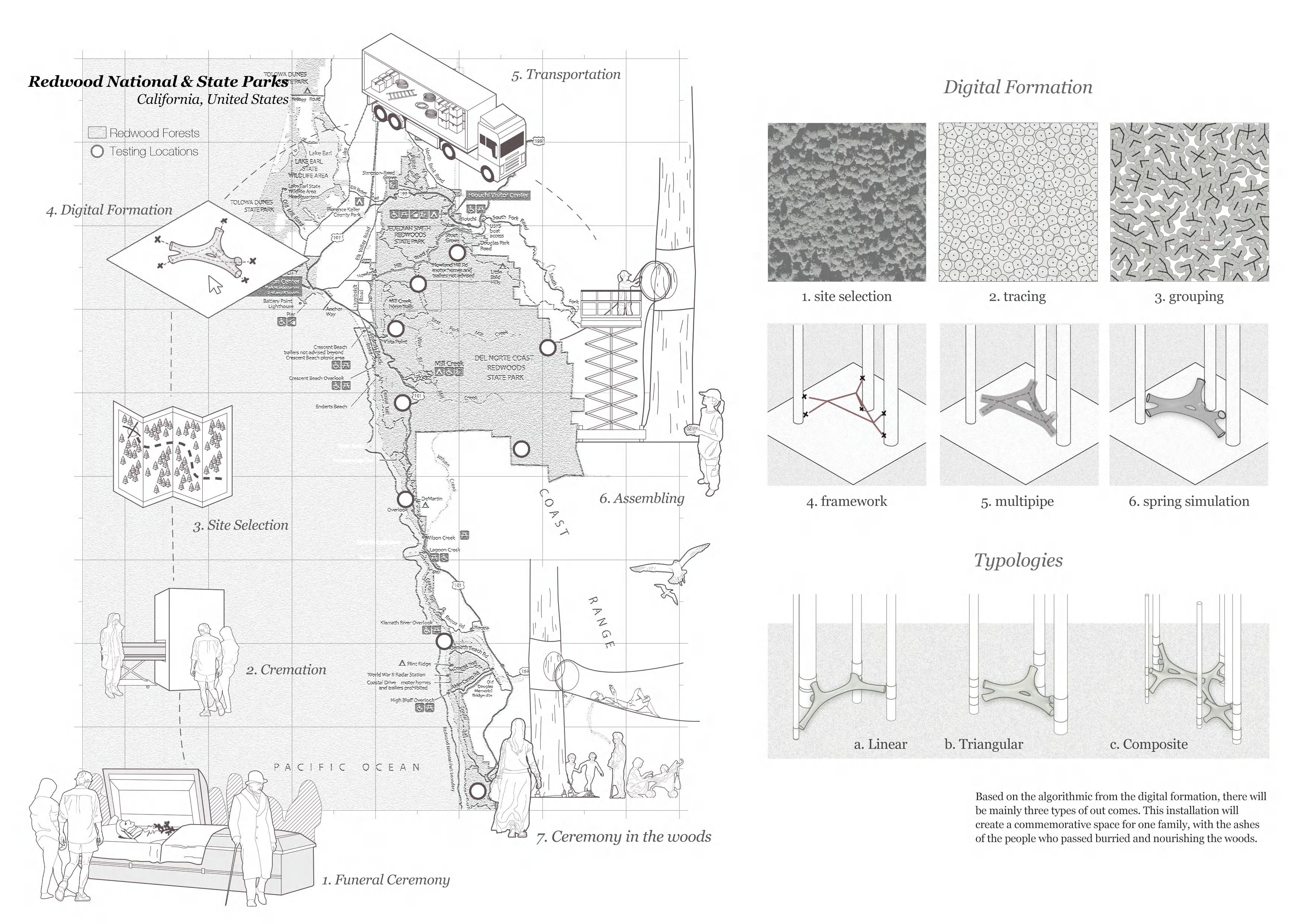 This project is a design of a different type of graveyard with a large installation in the woods representing the soul of those who passed away in the family.