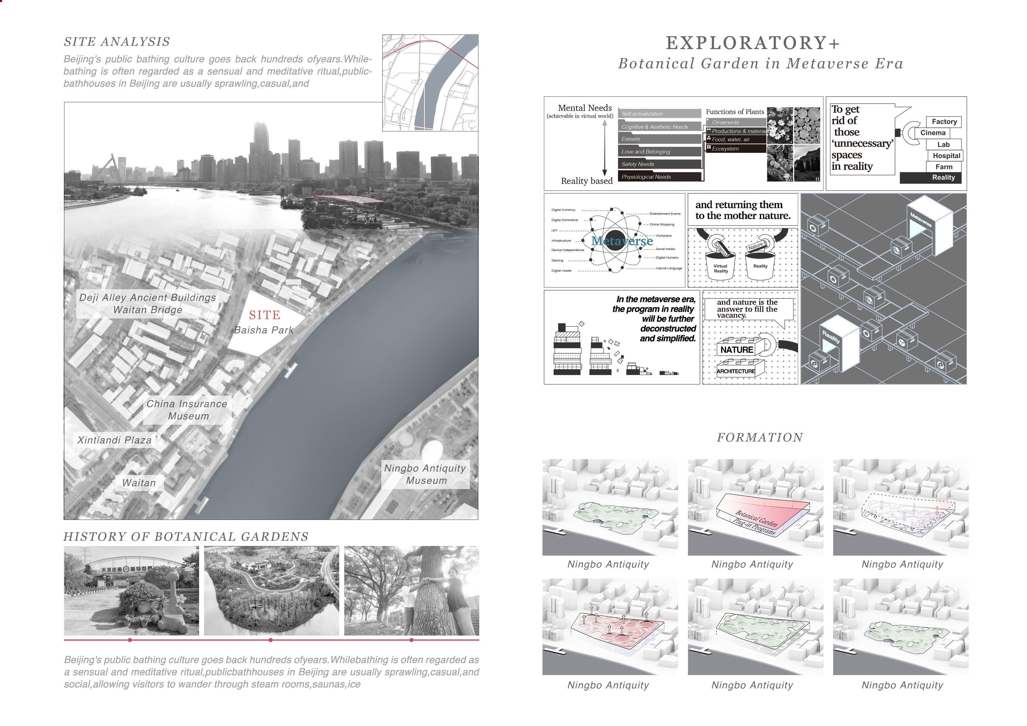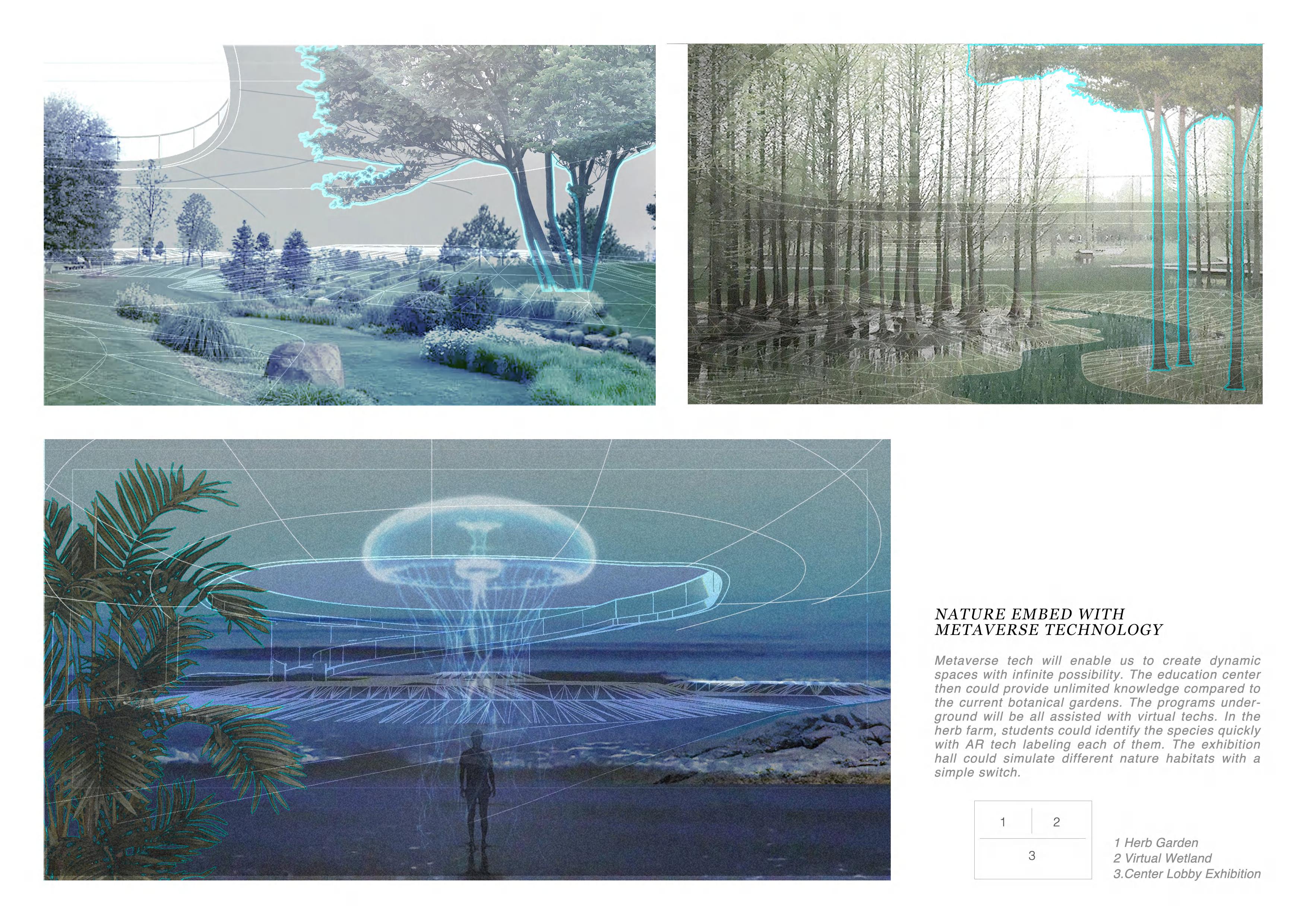 The project explores the possibility that metaverse technologies brought to deconstruct and simplify programs in reality and returning more space to the nature in architectural design.