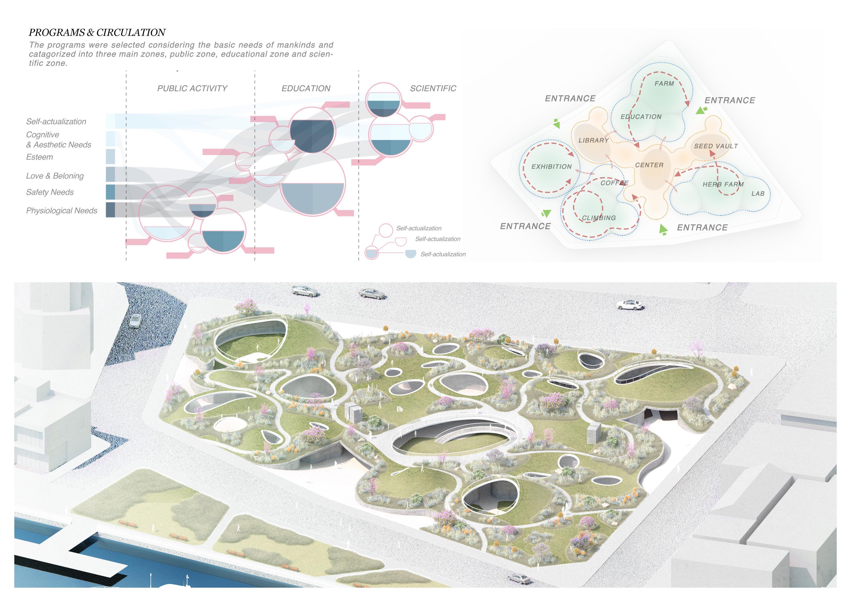 cafe exhibition reception climbing club meeting room classroom farm land lobby herb farm seed vault lab library