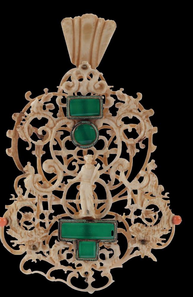 The jewellery historian Beatriz Chadour-Sampson who was the consultant curator for the new William & Judith Bollinger Jewellery Gallery at the Victoria & Albert Museum, co-curator for the V&A’s 2013-14 Pearl Exhibition, and who also worked on the treasure of the Nuestra Seňora de la ConcepciÛn which sank off the coast of the Mariana Islands in 1638 on its way from Manila in the Philippines to Mexico has examined the pendant comparable to the ones present, which Michael Backman ltd., London sold. Its styling was known and can be traced in the jewellery found in the Nuestra Senora treasure that the Spanish commissioned Chinese artisans to make in the European style for trade with Europe.