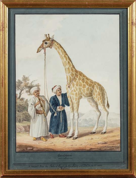 ‘Camelopard – a present from the Pacha of Egypt to the King – at Malta on its way to England’
